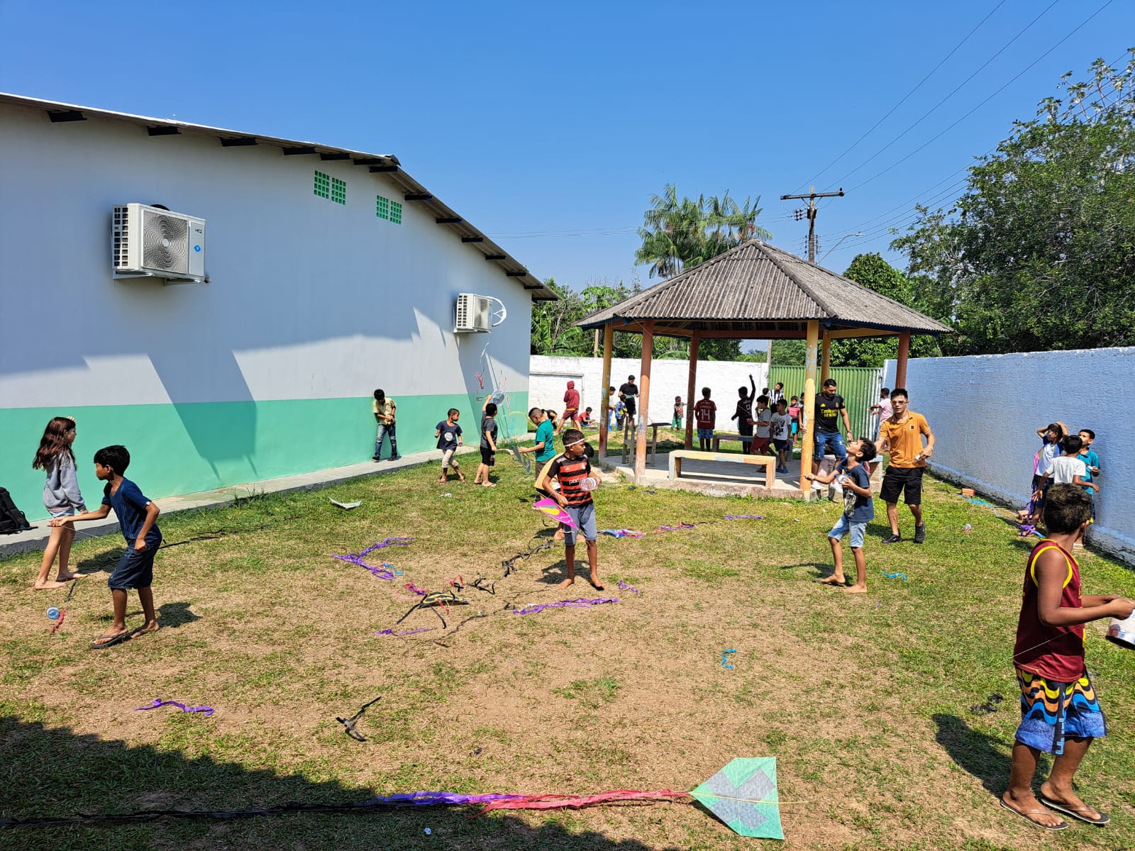 Mas as comemorações não pararam por aí! Em alusão ao Dia das Crianças, a escola preparou uma programação especial repleta de atividades lúdicas e criativas. Teve sala de cinema, pintura facial, bingos, dança, pula-pula e até momento de soltar pipa, garantindo sorrisos e memórias inesquecíveis para os pequenos.