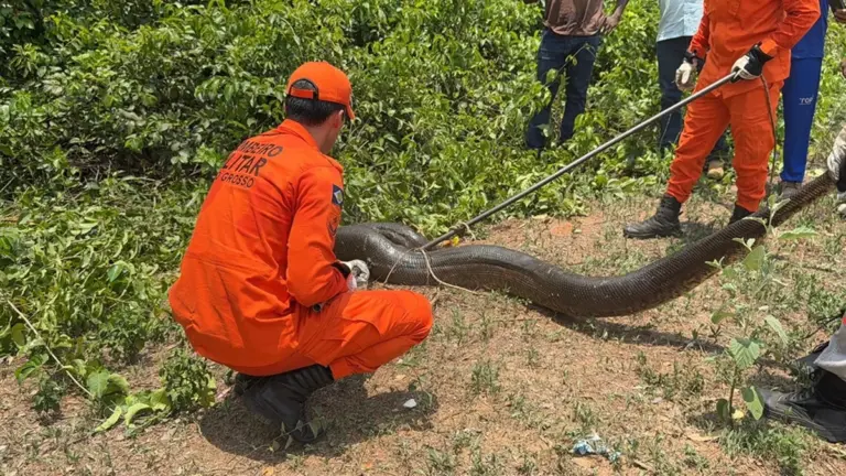 Bombeiros resgatam sucuri de 5 metros de comprimento em área urbana