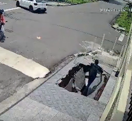 Câmeras registram momento em que homem afunda em buraco após calçada ceder
