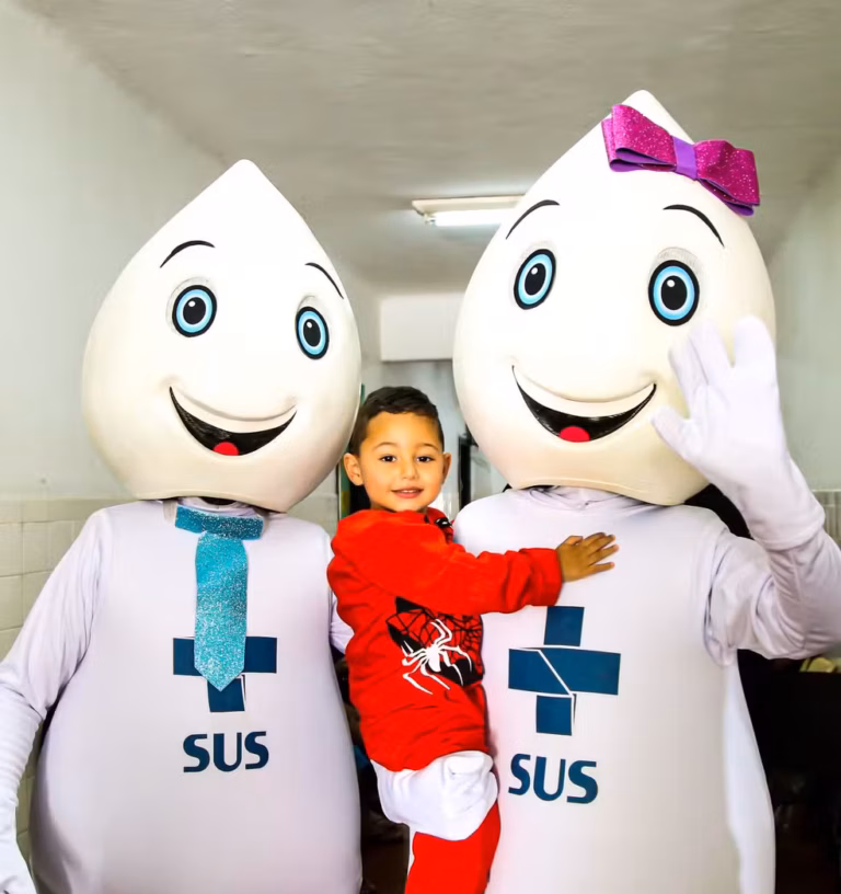 Durante o Dia D, famílias aproveitaram para atualizar a carteira de vacinação e registrar o momento com o Zé Gotinha, símbolo nacional das campanhas de imunização.