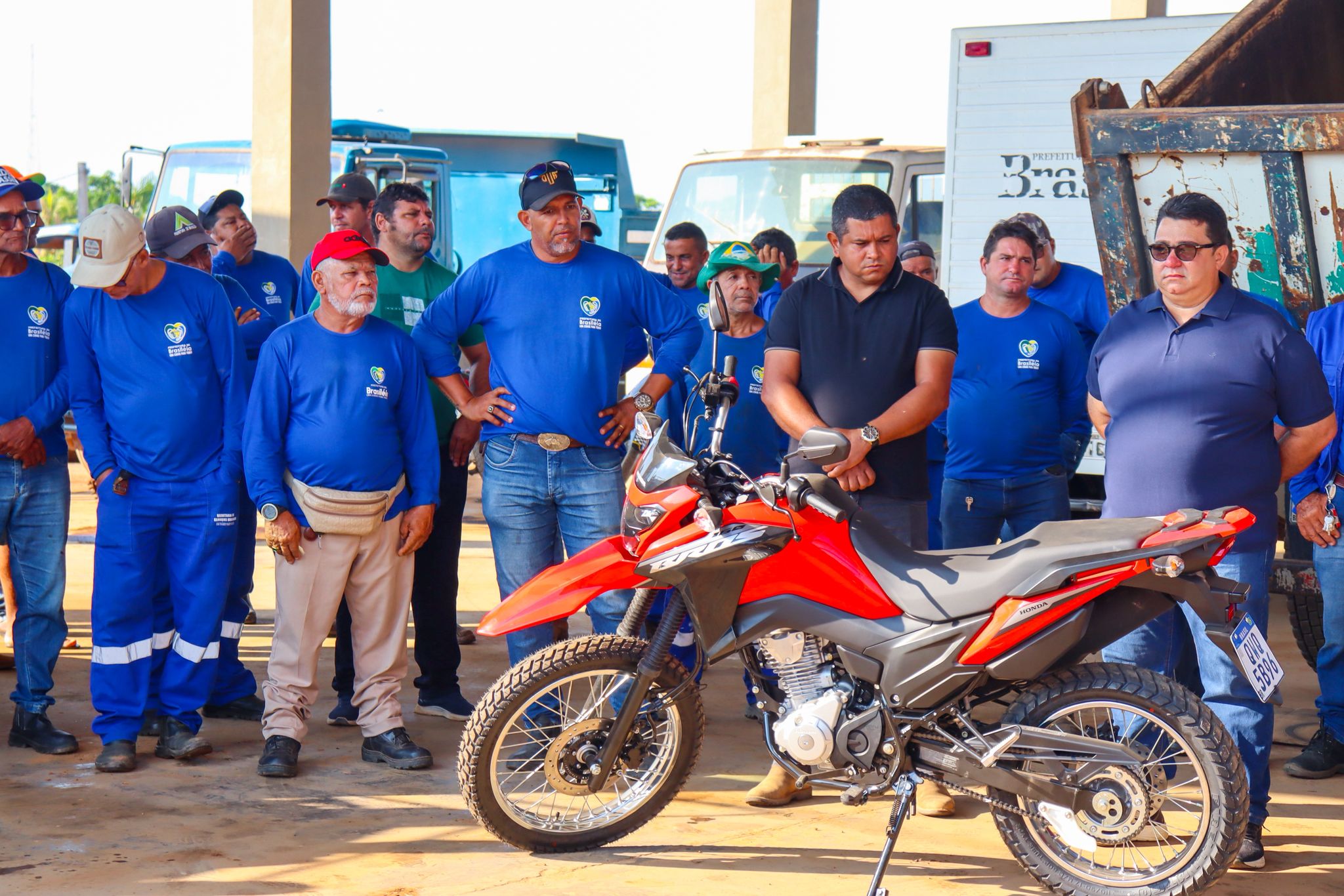 Entrega da moto BROS 160 zero quilômetro, reforçando a mobilidade da equipe da Secretaria de Obras/Foto: Ascom