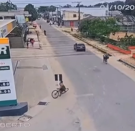 Um vídeo enviado ao Extra do Acre mostra o instante em que um ciclista colide contra uma placa de sinalização posicionada de forma irregular na rua Epaminondas Jácomes, em Tarauacá, interior do Acre.