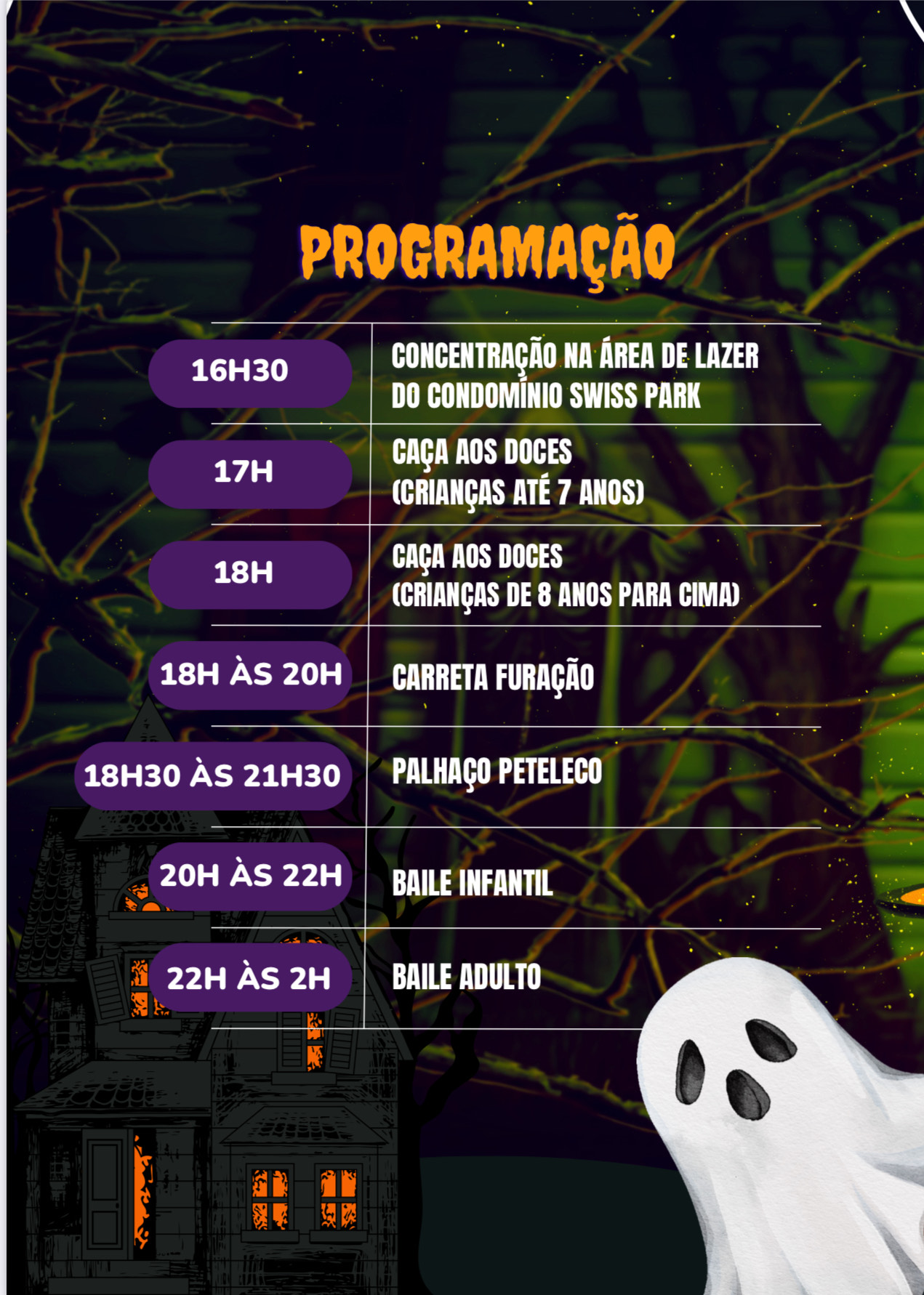 O condomínio Swiss Park entra no clima do terror e realiza, no dia 1º de novembro, o seu aguardado Halloween, que promete muita animação e criatividade. A festa contará com premiação com troféus para a casa mais decorada e para as melhores fantasias da noite.