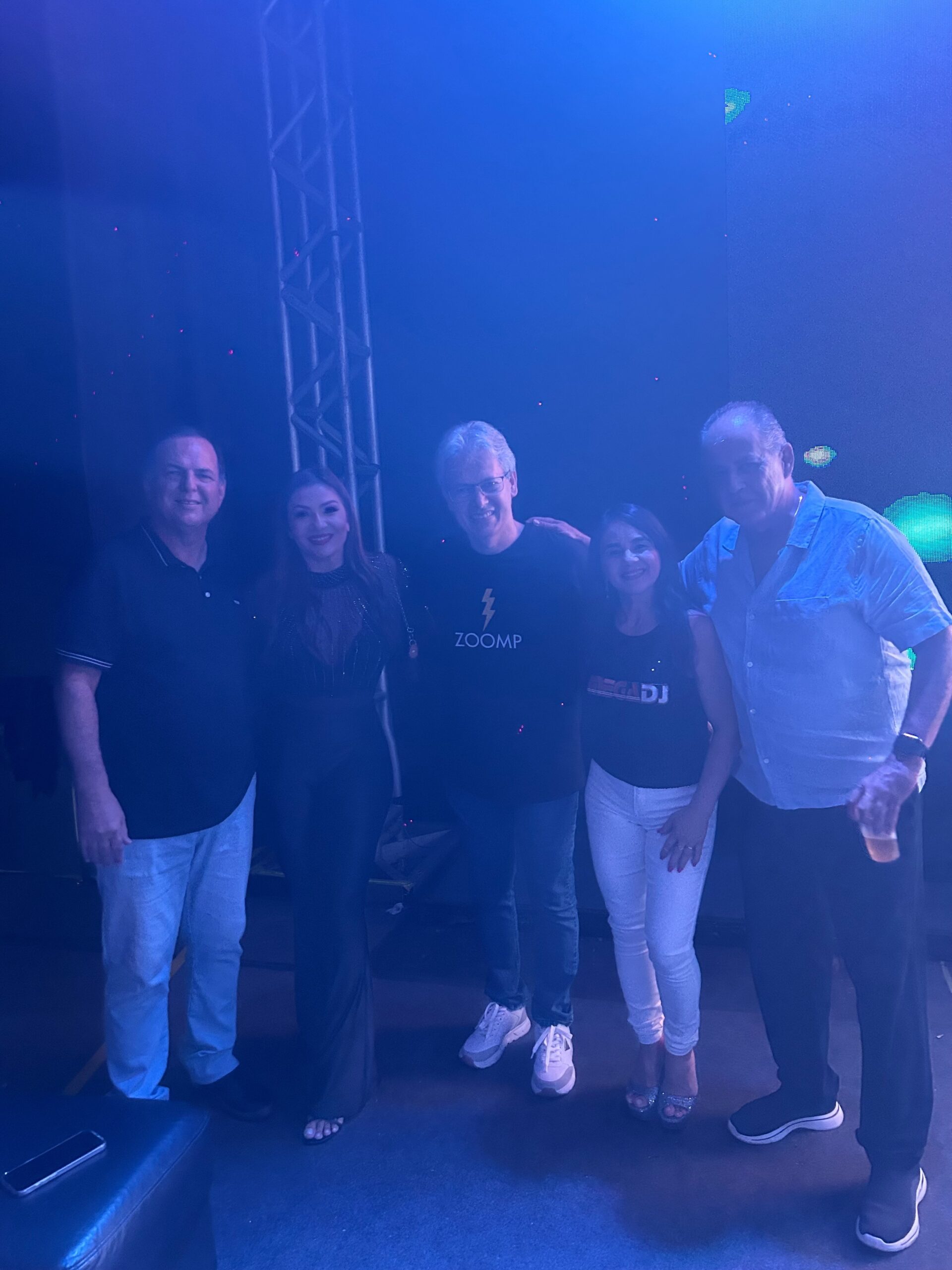 Esta colunistas com os Djs Elves Araruna , Adelino Mega, Sandra Marques e o empresário Athos Borges.