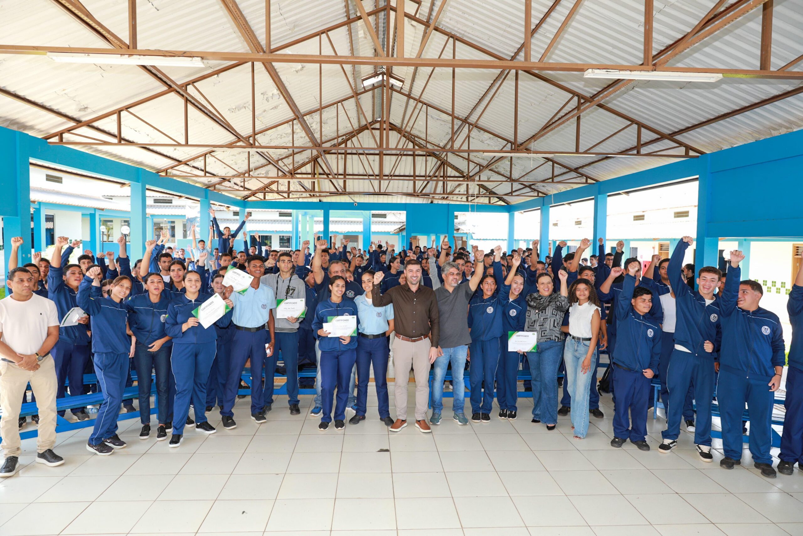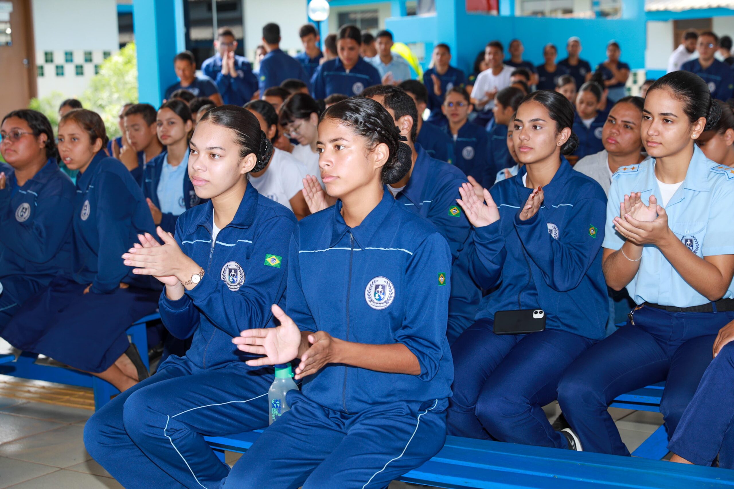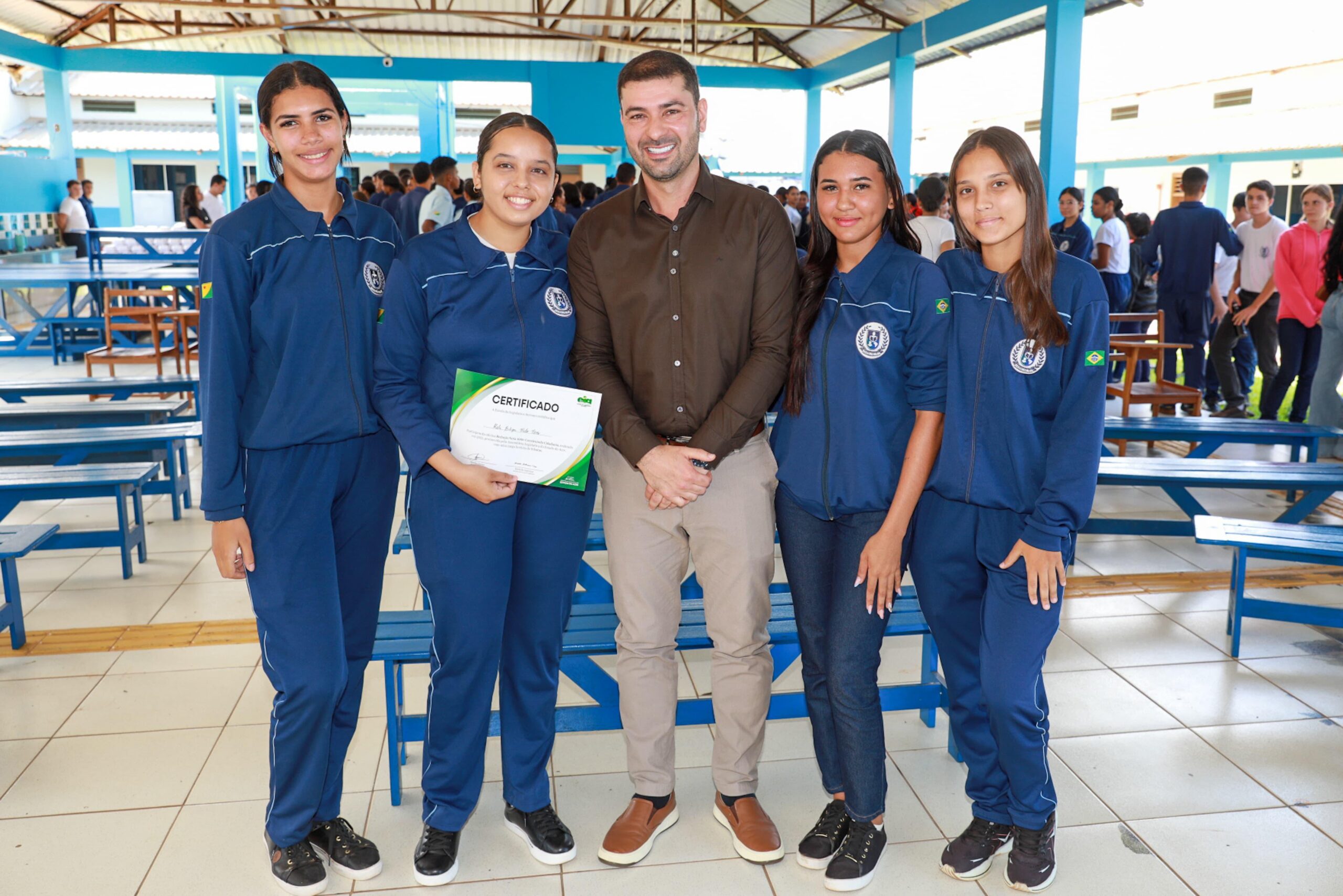 Deputado Nicolau Júnior entrega certificados a estudantes da Escola Cívico Militar Aldacir Simões, em Senador Guiomard/Foto: Ascom