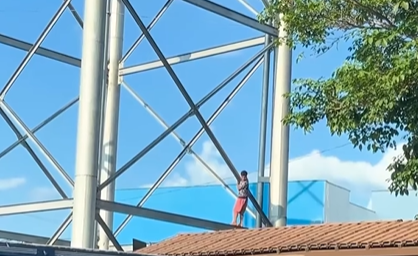 Criança sobe em caixa d’água no bairro 6 de Agosto, em Rio Branco; estrutura não tem cercamento nem sinalização/Foto: Reprodução/Tv Norte Rio Branco