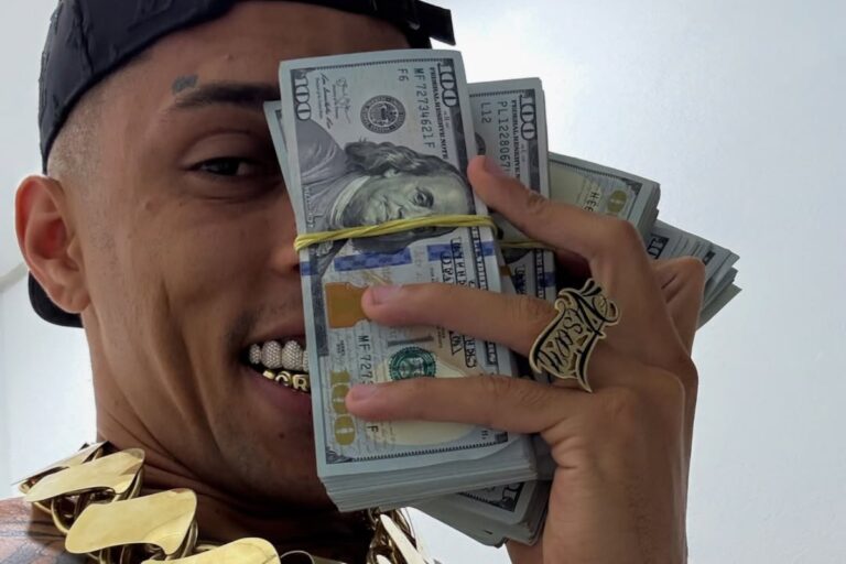 Buzeira posa com bolos de dinheiro para as redes sociais