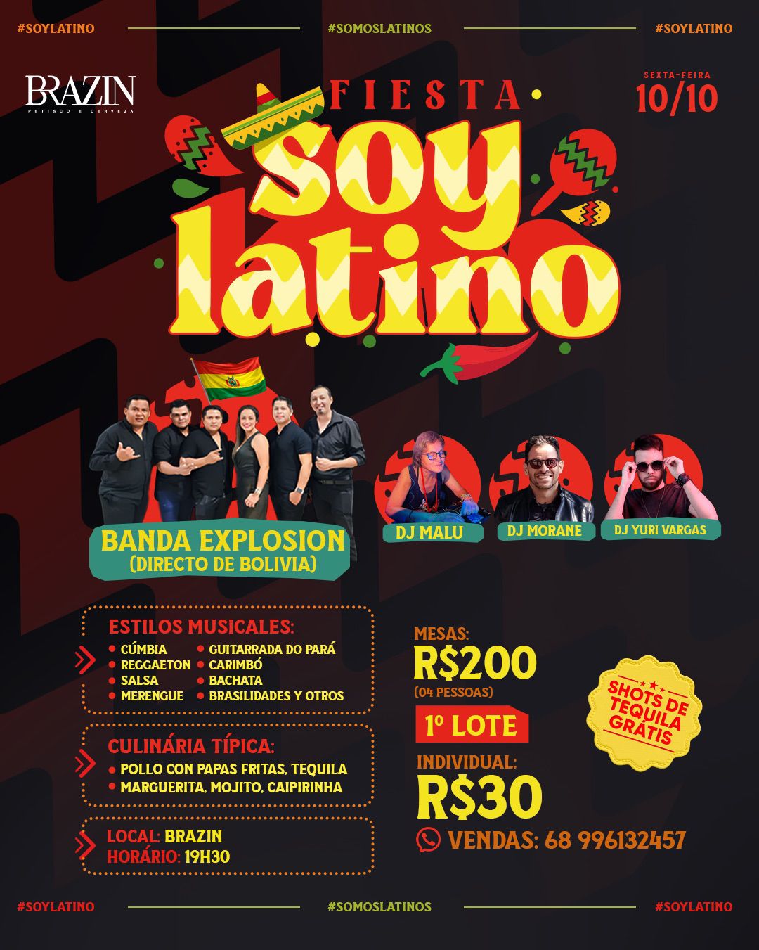 No dia 10 de outubro (sexta-feira), a capital acreana será tomada pela energia vibrante da Fiesta Soy Latino, um evento que celebra a cultura, a música e o espírito latino em uma noite cheia de ritmo, cores e sabores.