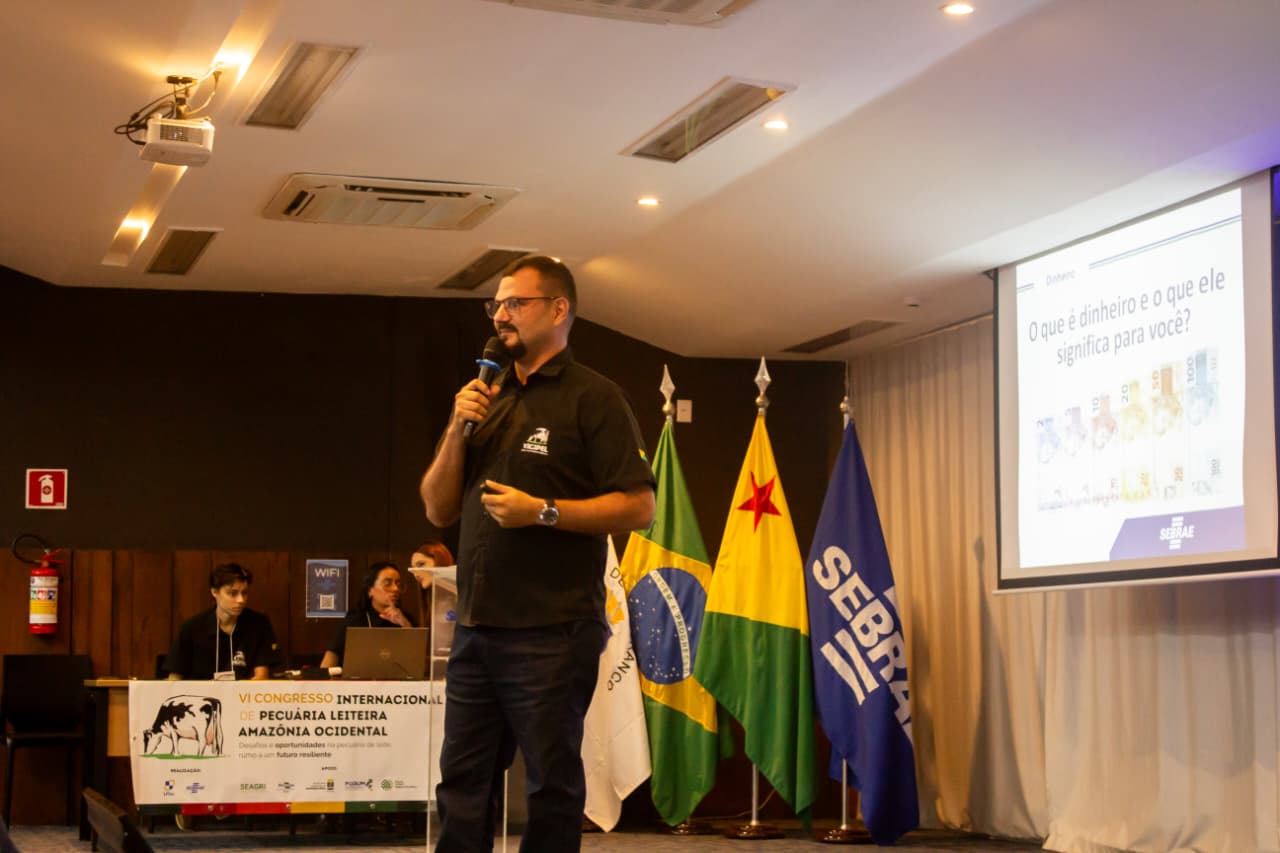 Pela manhã, técnico do Sebrae/AC Jailson Araújo palestrou sobre educação financeira e sucessão familiar, Jean Paulo Gotelip, representante da empresa Norte Rebanho, fez uma apresentação sobre as vantagens e os desafios da utilização da transferência de embriões em gado leiteiro.