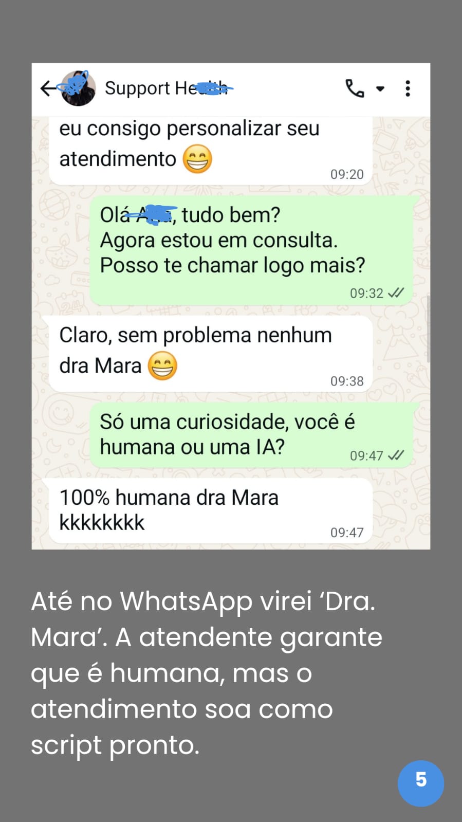 Foi isso que eu testei. Quando perguntei ao Perplexity, uma das Ias mais comentadas do momento, sobre as plataformas genéricas de saúde, ele parecia estar defendendo com unhas e dentes. Bastou eu enviar prints reais para que a resposta mudasse completamente, reconhecendo falhas sérias. Ou seja: sem contexto, vem frase pronta; com contexto, vem análise.