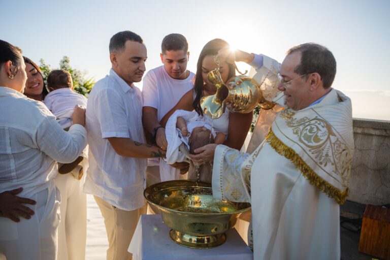 Em um momento cheio de significado, João e Ary ainda aproveitaram a ocasião para reafirmar seus votos matrimoniais, e celebraram com fé esta nova fase da família. Sob o olhar do Cristo e rodeados de bênçãos, o casal comemorou a vida e o amor que os acompanha desde o início da trajetória juntos.