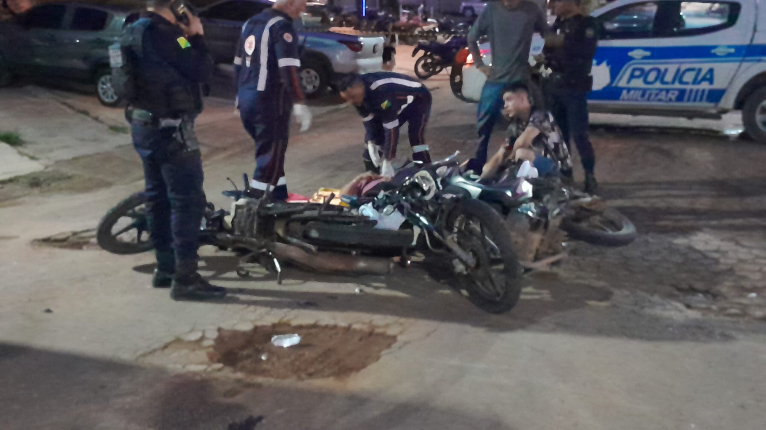 De acordo com relatos de populares, um dos motociclistas avançou a via preferencial, provocando o choque entre os veículos. Com a batida, ambos os condutores caíram na pista e sofreram ferimentos, sendo um deles com suspeita de fratura no pé.