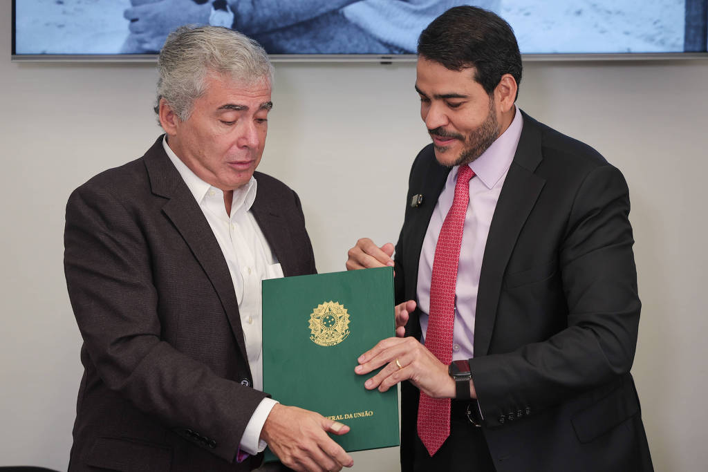Ivo Herzog, filho de Vladimir, e Jorge Messias, ministro da Advocacia-Geral da União (AGU)Foto: Danilo Verpa/Folhapress