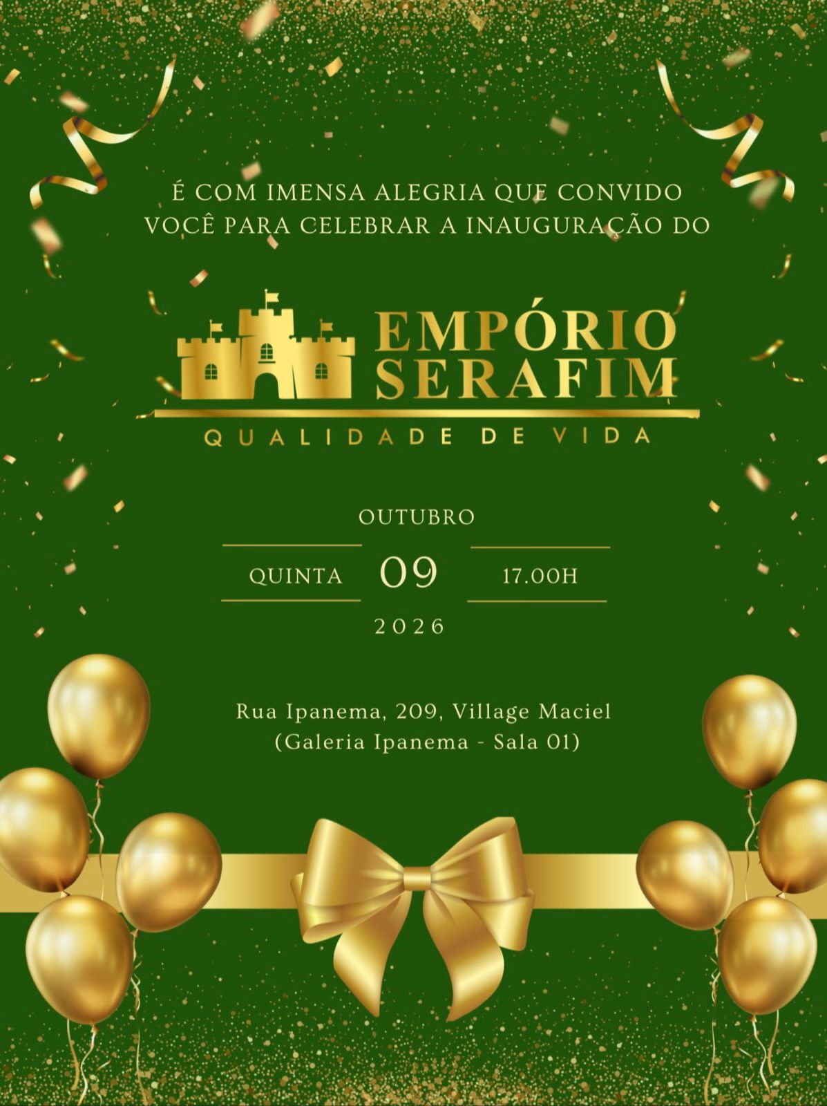 Nesta quinta, 9, às 17h, acontece a aguardada inauguração do Empório Serafim-Qualidade de Vida, nos domínios da Galeria Ipanema.