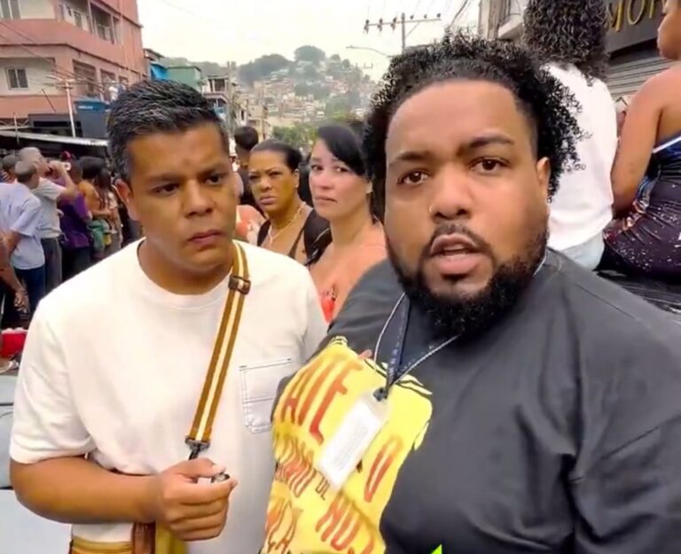 Cercado por corpos deixados a céu aberto, o morador expressa revolta: “Isso aqui é ódio! Isso traz ódio pra nós! Não existe país no mundo onde a decapitação de um jovem aqui, em praça pública, seja normalizada, mano. Isso aqui é um santinho político pra Cláudio Castro, mano. (…) A gente tem mais morto que no Carandiru, porra, a céu aberto numa favela. Como é que nós vamos normalizar isso, mano? Dá educação pra essa rapaziada, caralho, traz cultura pra dentro da favela.”