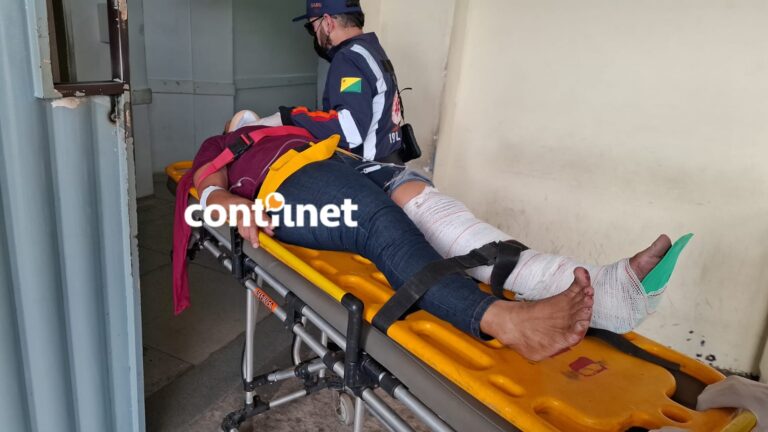 Com o impacto, a mulher caiu no asfalto e sofreu uma fratura fechada na perna direita, além de escoriações pelo corpo.