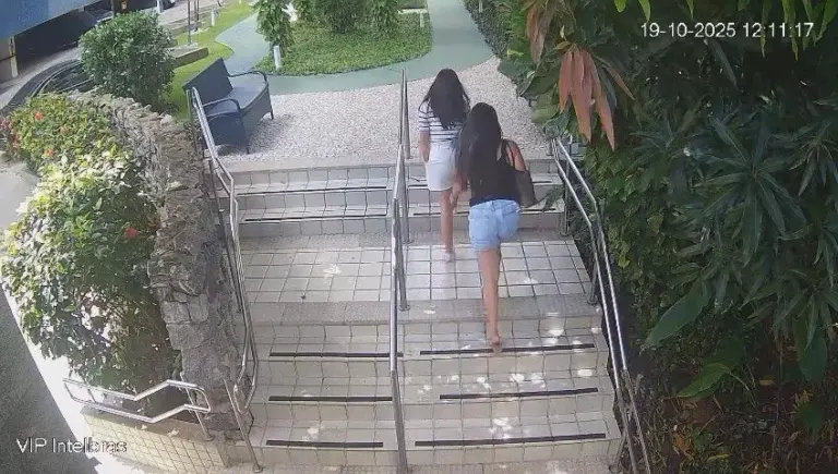 As câmeras do condomínio mostram que as mulheres chegaram ao edifício por volta das 12h10, em um carro branco. Elas entraram pela portaria, circularam pelas áreas comuns e subiram até o 7º andar, acompanhadas por uma moradora. Após cerca de 30 minutos dentro do imóvel, as suspeitas foram vistas retornando ao elevador com duas bolsas cheias.