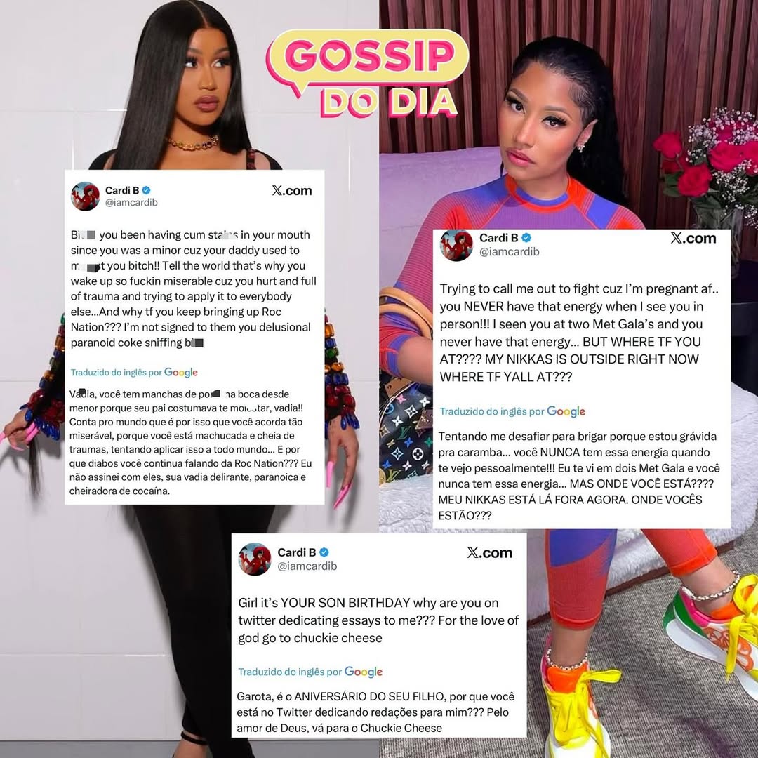 Cardi B e Nicki Minaj trocaram farpas intensas no X (antigo Twitter) nesta segunda-feira (29), após a cantora de “Starships” alfinetar Cardi e zombar de seu novo álbum, “Am I The Drama?”. Nicki publicou uma série de tuítes depreciativos, que depois apagou, e Cardi reagiu à altura, ironizando a rival e comentando sobre sua quarta gravidez.