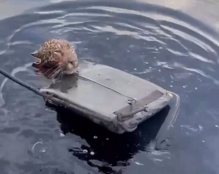 Onça-pintada é resgatada exausta e debilitada após horas nadando