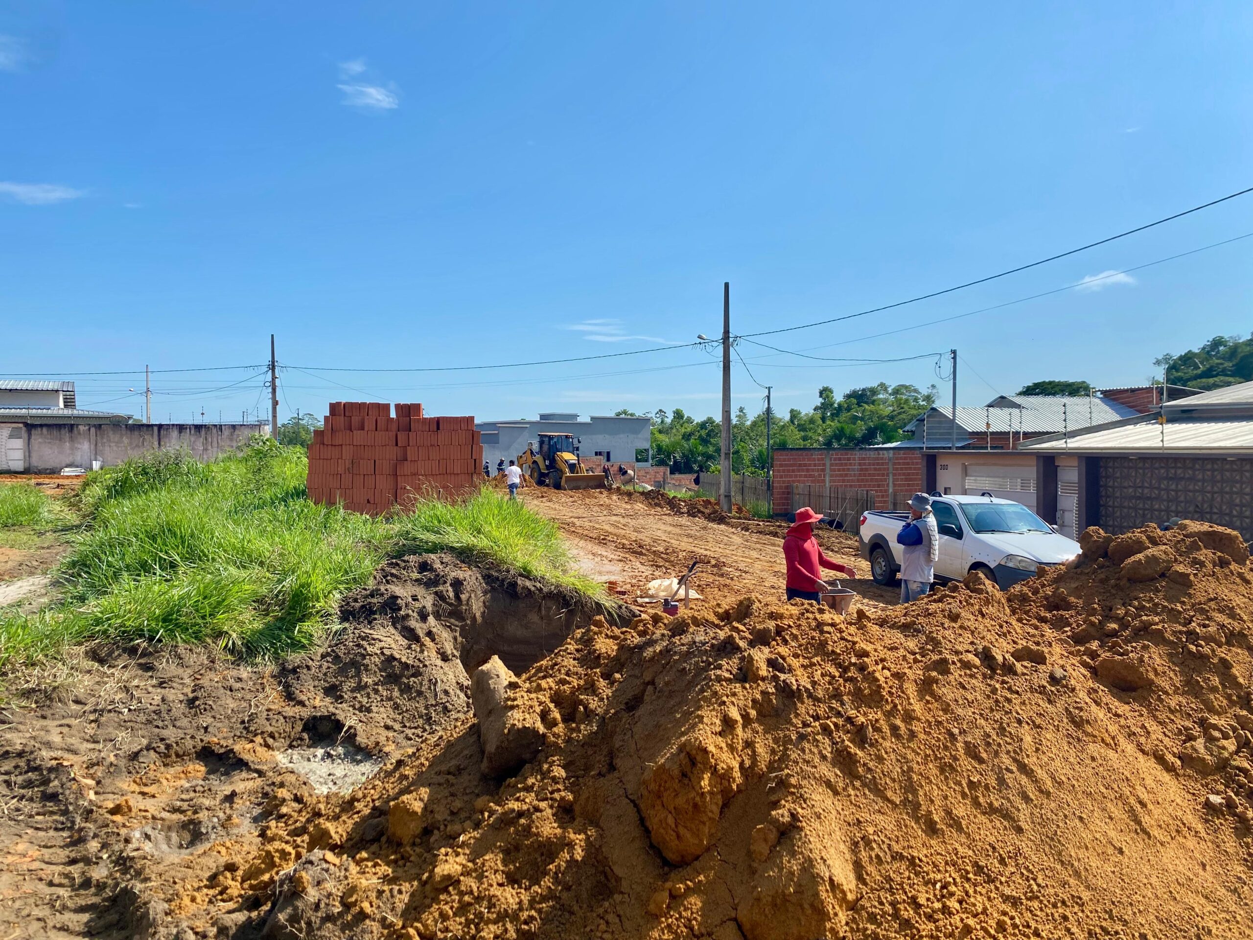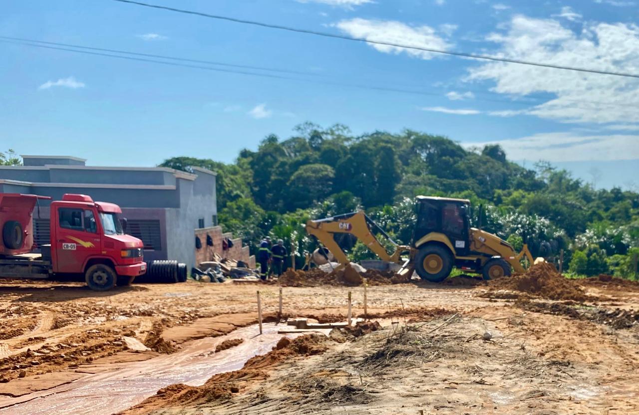 Prefeito Zequinha Lima vistoria obras de drenagem na Rua Santa Terezinha, no Bairro Aeroporto Velho, que receberá 400 metros de asfalto/Foto: Divulgação/Prefeitura de Cruzeiro do Sul
