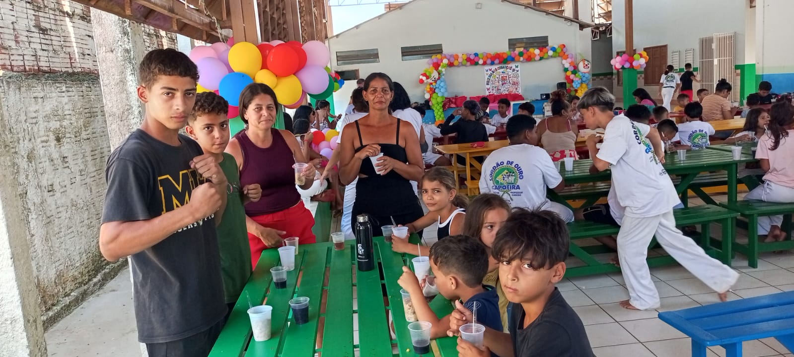 Alunos que fazem parte do projeto Luva de Ouro com prática de boxe, foram recebidos pelo professor Antônio Marcos Almeida de Santa Isabel e sua equipe, para comemorar o Dia das Crianças. O evento contou com a presença de familiares e convidados dos atletas, além do grupo de capoeira Camarão, coordenado pelo professor Camaleão.