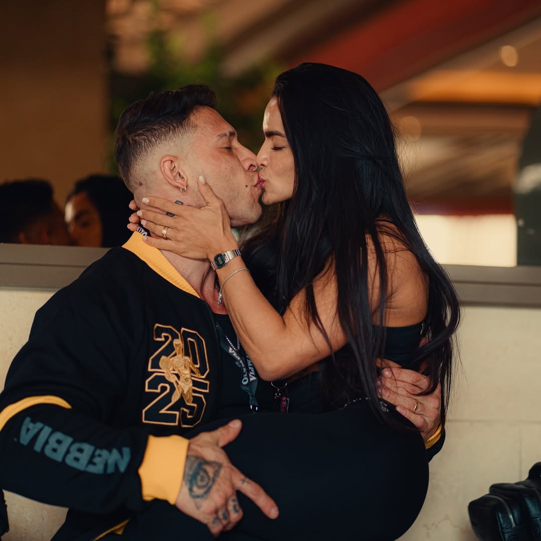 Ao lado da esposa, Vitória Vianna, Ramon Dino mostra confiança e recebe o carinho dos fãs brasileiros antes de subir ao palco do Mr. Olympia 2025/Foto: Reprodução