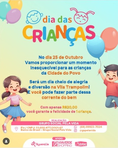 Neste ano, a proposta é oferecer um Dia das Crianças inesquecível na Vila Trampolim, repleto de risadas, brincadeiras e experiências especiais. E toda a comunidade pode contribuir para que isso aconteça: com somente R$ 20,00, é possível garantir a alegria e o sorriso de uma criança.