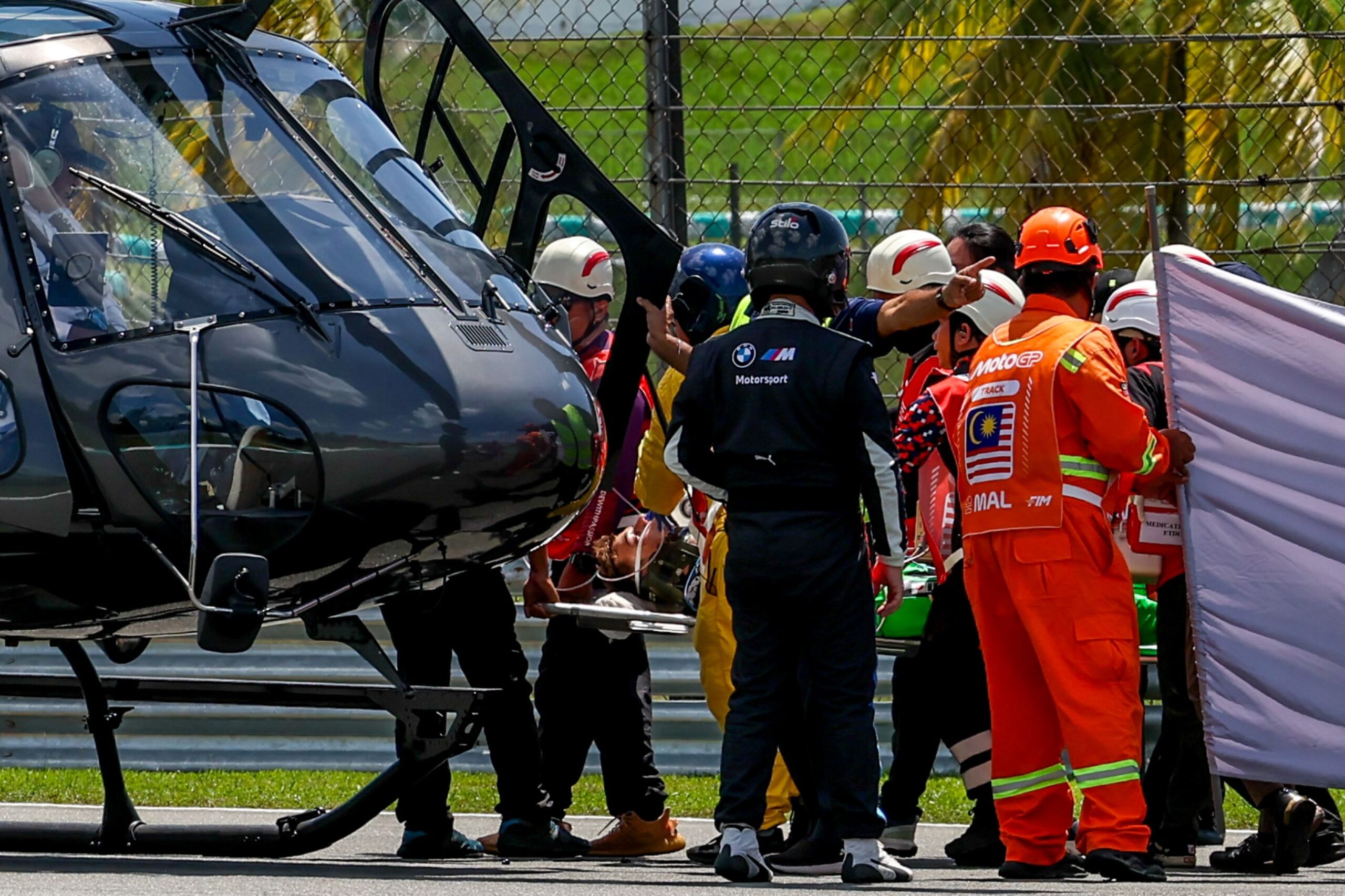 Minutos antes da largada do Grande Prêmio da Malásia de Moto3, neste domingo (26/10), dois motociclistas sofreram um grave acidente. O espanhol José Antonio Rueda e o suíço Noah Dettwiler se chocaram na volta de aquecimento para a prova. O impacto foi tamanho que os dois foram levados ao hospital de helicóptero.