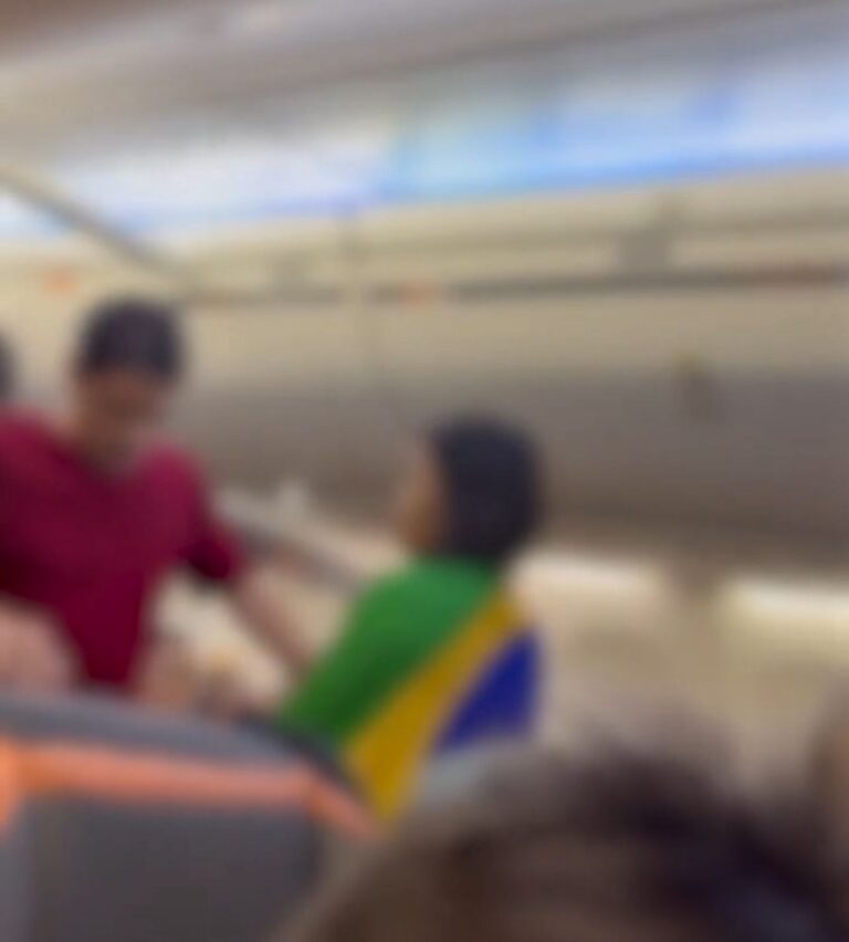 Segundo testemunhas, a mulher, que se identificava como bolsonarista, se envolveu em um surto de agressividade dentro da aeronave. Enrolada em uma bandeira do Brasil, ela começou a xingar os demais passageiros, chamando-os de “estuprador, abusador, aliciador, assediador”, entre outros insultos.