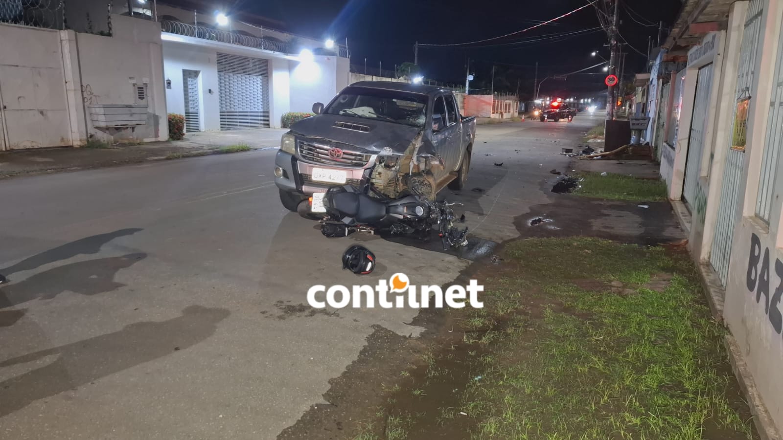 A motociclista Jéssica da Silva Anedino, de 34 anos, ficou gravemente ferida após uma colisão frontal com uma caminhonete na noite deste sábado (25), na Rua Nossa Senhora da Conceição, no bairro 15, em Rio Branco.