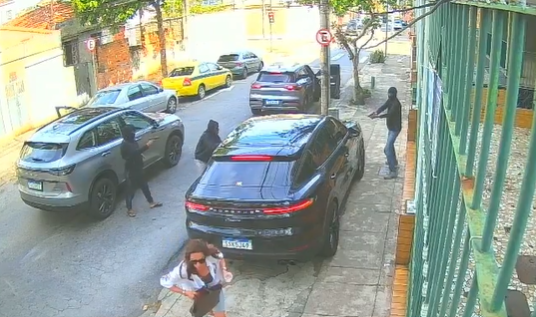 Câmeras de segurança registraram o momento em que três criminosos pararam dois carros ao lado do Porsche, desceram e anunciaram o assalto. O motorista da Porsche, que estava do lado de fora do veículo, correu para dentro do carro, conseguiu fechar a porta rapidamente e fugiu do local em seguida.