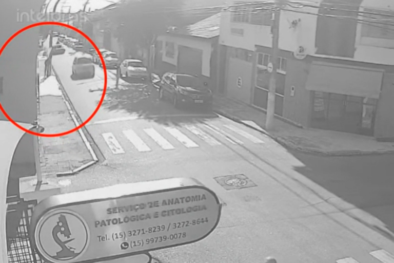 Um vídeo mostra o suspeito deixando a clínica — por volta das 16h30 — e caminha pela calçada. Nas imagens, o homem aparece na porta do estabelecimento e, na sequência, atravessa tranquilamente a rua.