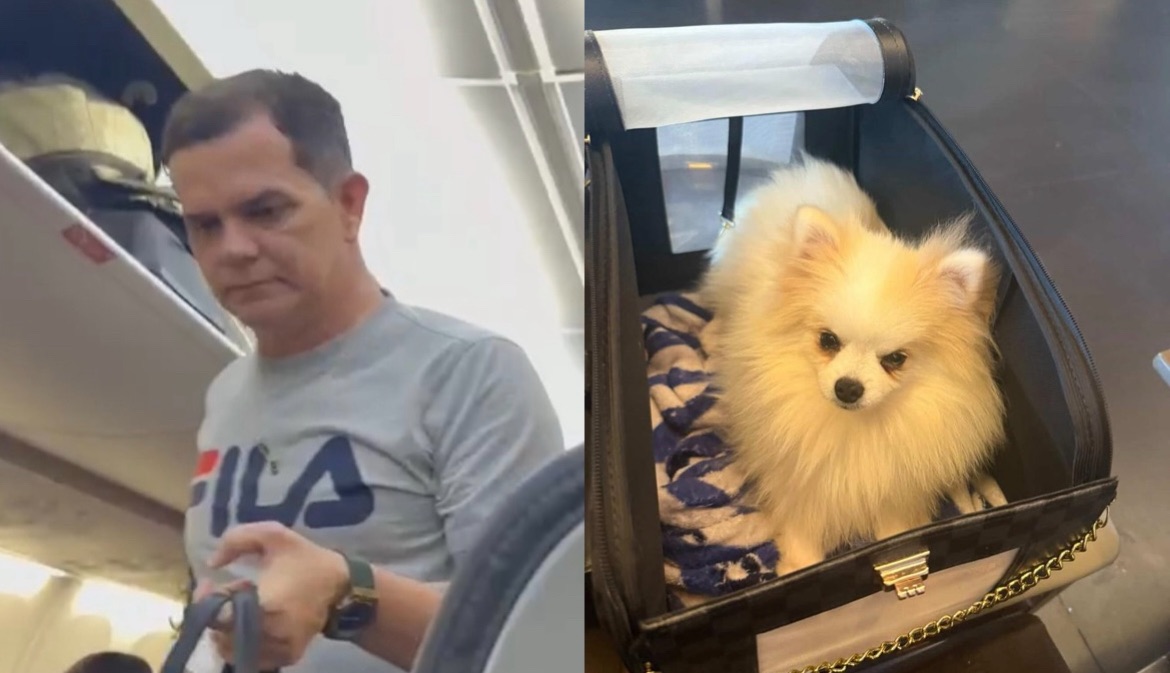 Já dentro da aeronave, o passageiro diz ter se deparado com um novo impasse: o assento 8F, registrado no check-in, estava ocupado. Vanderson explica que escolheu antecipadamente o local por oferecer mais espaço — algo importante para ele por conta de um problema na coluna — e também para acomodar seu cachorro, que viajava na cabine.