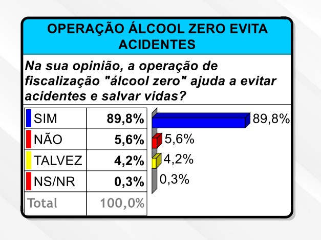 A eficácia da medida também é reconhecida pela população: 89,8% acreditam que a operação ajuda a evitar acidentes e salvar vidas.