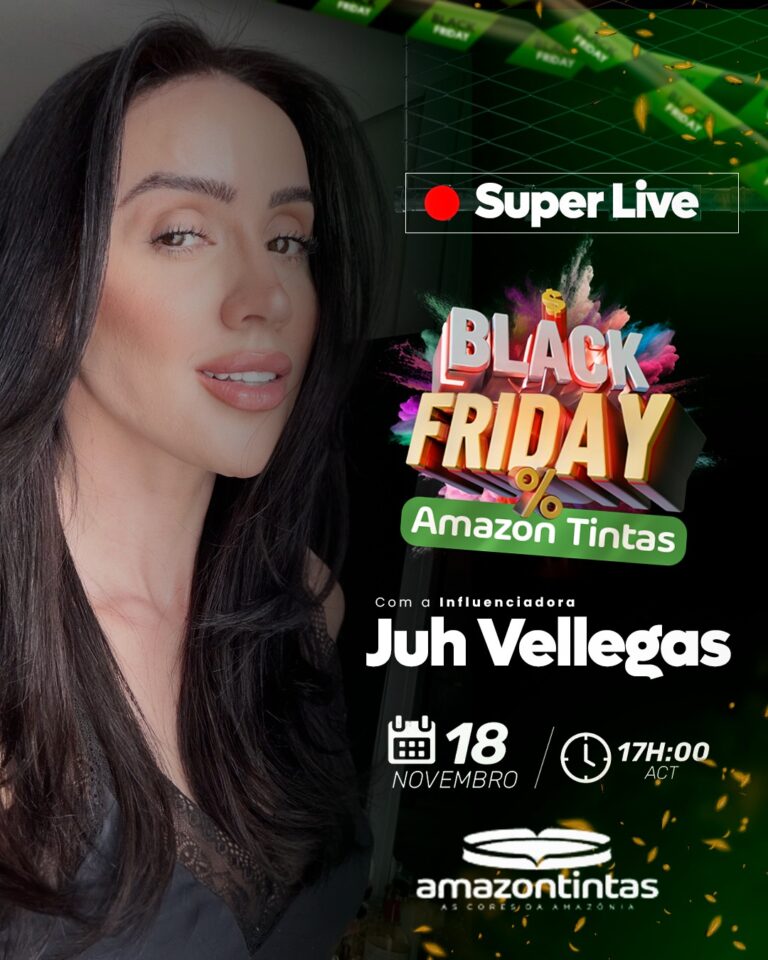 A Amazon Tintas realizará na data de hoje, de forma inédita, live shop especial de Black Friday às 17h no Instagram da marca (@amazon.tintas). Essa ação inaugura a maior ação de Black Friday do setor de tintas do estado do Acre.