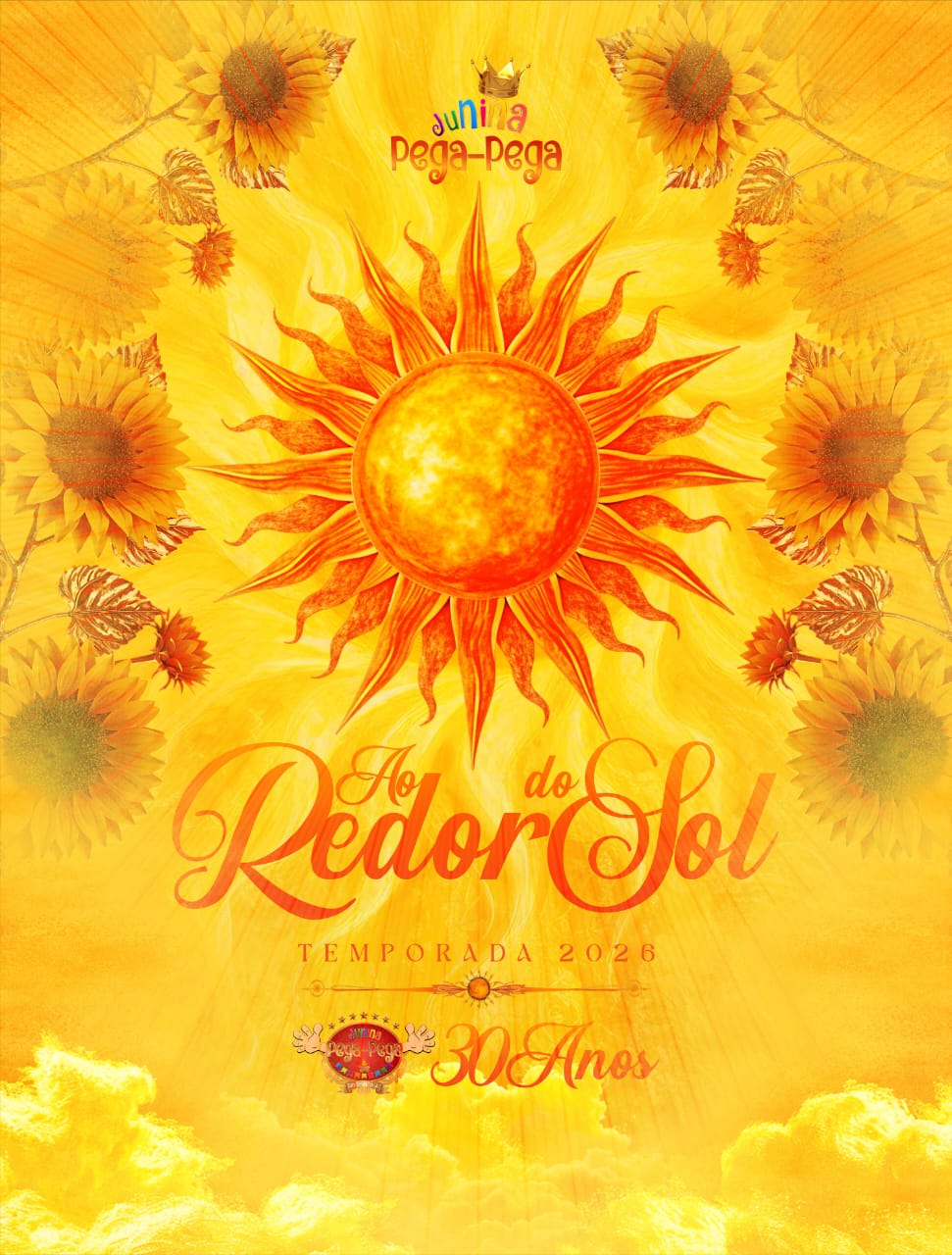 A Junina Pega-Pega anunciou, durante a JPP Folia 2.0, festa de encerramento da temporada 2025, realizada no sábado, 29, o tema que irá conduzir o grupo na temporada de 2026, ano em que completa 30 anos de história. A temática escolhida, “Ao redor do Sol”, simboliza a energia, os ciclos e o brilho que marcaram quase três décadas de dedicação à cultura junina.