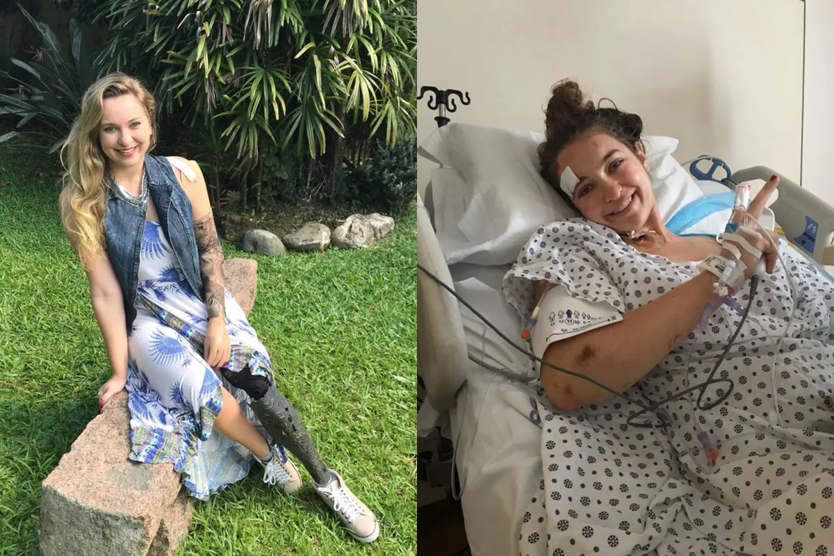 A brasileira ficou internada por 24 dias em um hospital nos EUA, precisou ter os membros amputados e passou por cirurgias e enxertos de pele. Hoje, ela usa próteses nos membros que perdeu.