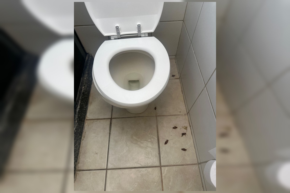 Cliente relata que dezenas de baratas surgiram no banheiro enquanto a filha de 3 anos tomava banho