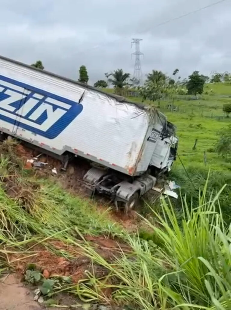 De acordo com informações preliminares, o veículo saiu da pista e parou às margens da rodovia após tombar. Imagens gravadas por motoristas que passavam pelo local mostram o caminhão virado fora da estrada, enquanto curiosos acompanhavam a ocorrência.