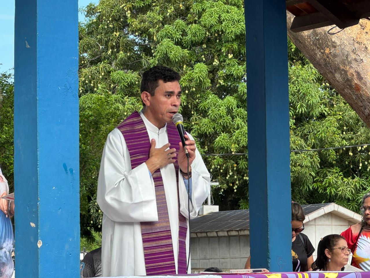 A celebração é conduzida pelo padre Manoel, da Catedral Nossa Senhora de Nazaré, e faz parte da programação religiosa organizada para o dia. A missa reúne pessoas de diferentes idades, em um clima de fé, reflexão e saudade.