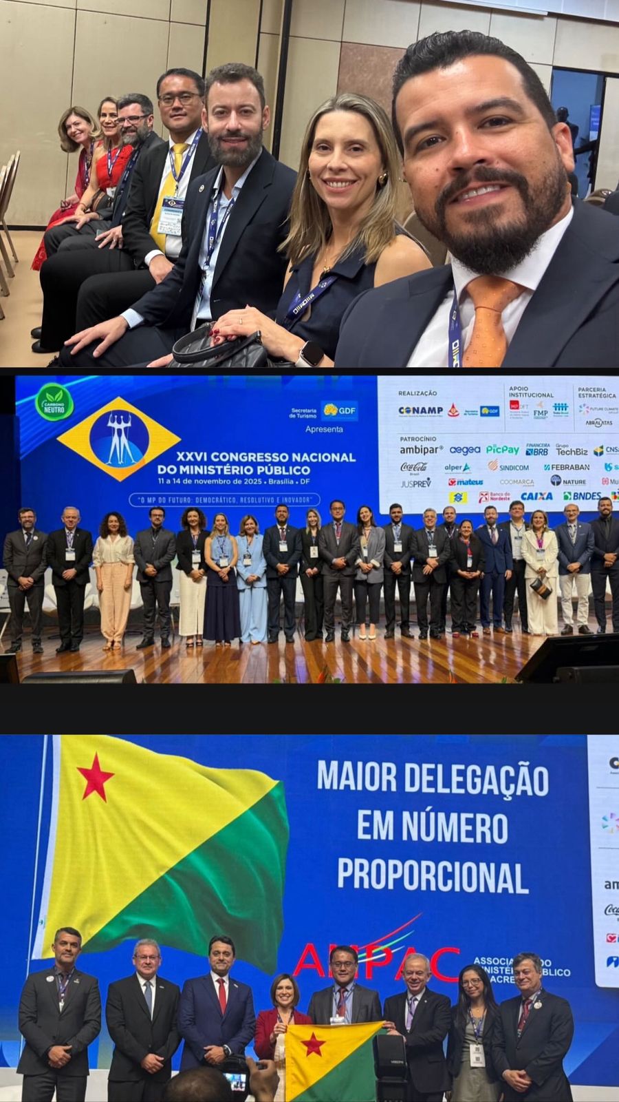 Membros do Ministério Público Estadual participaram do XXXVI Congresso Nacional do Ministério Público, realizado entre os dias 11 e 14 de novembro em Brasília-DF. Com o tema “O MP do futuro: Democrático, Resolutivo e Inovador”, o evento reuniu representantes de todo o país para debater os desafios e as perspectivas da instituição. Durante o congresso, a delegação acreana foi reconhecida e recebeu o prêmio na categoria Maior Delegação em Número Proporcional, destacando-se pela expressiva participação e engajamento nas atividades e discussões promovidas.