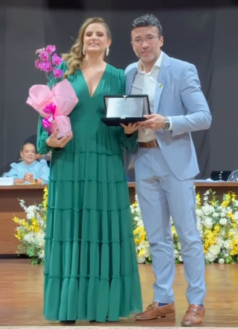 A Presidente da Acisa, Patrícia Dossa, foi homenageada pela Câmara Municipal de Rio Branco com o Prêmio Mulher Destaque 2025, recebendo a condecoração das mãos do vereador Zé Lopes. A premiação reconhece sua trajetória de liderança, dedicação ao desenvolvimento local e contribuição significativa para a população, consolidando seu papel como referência feminina na área empresarial e social da região.