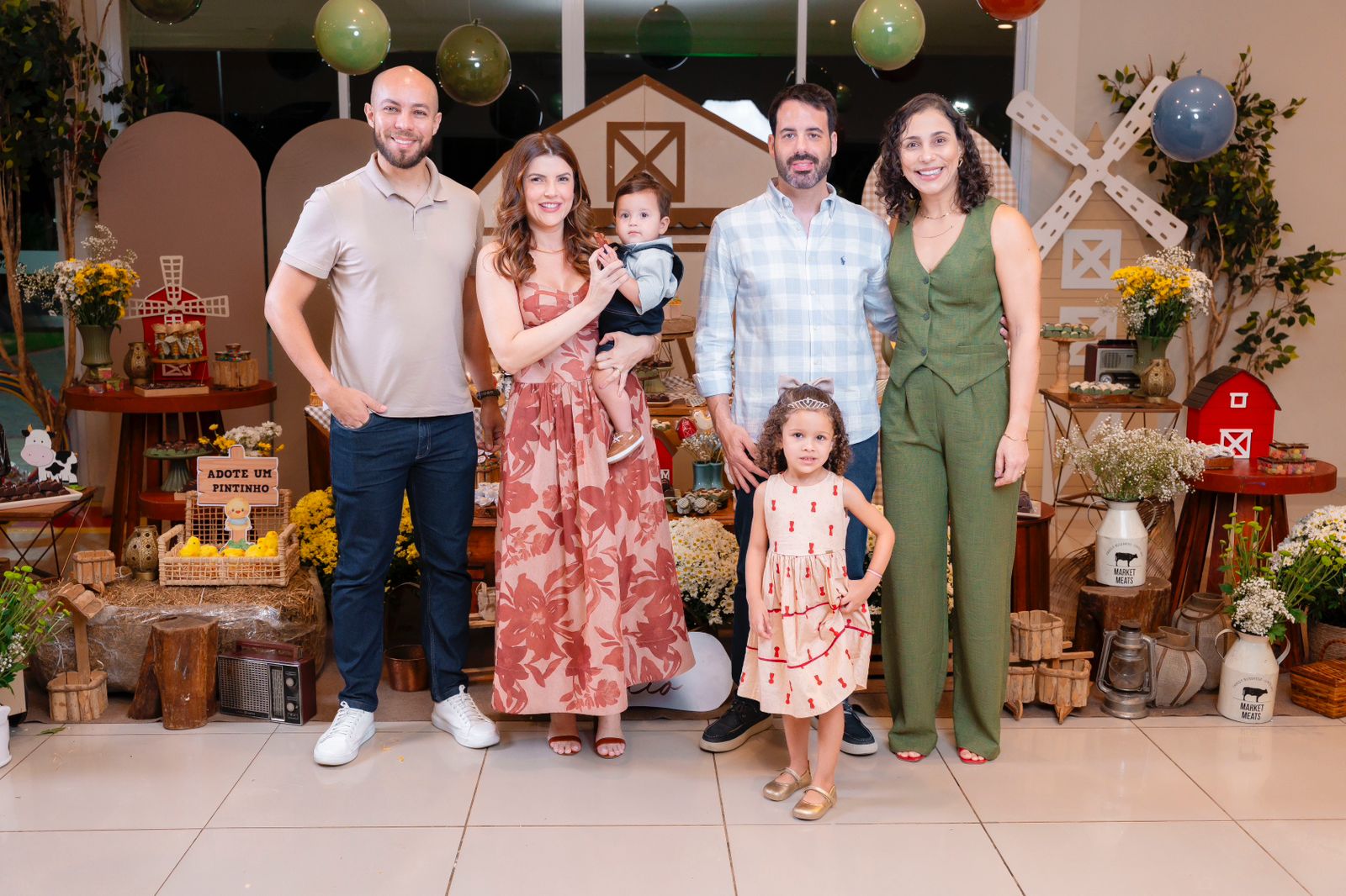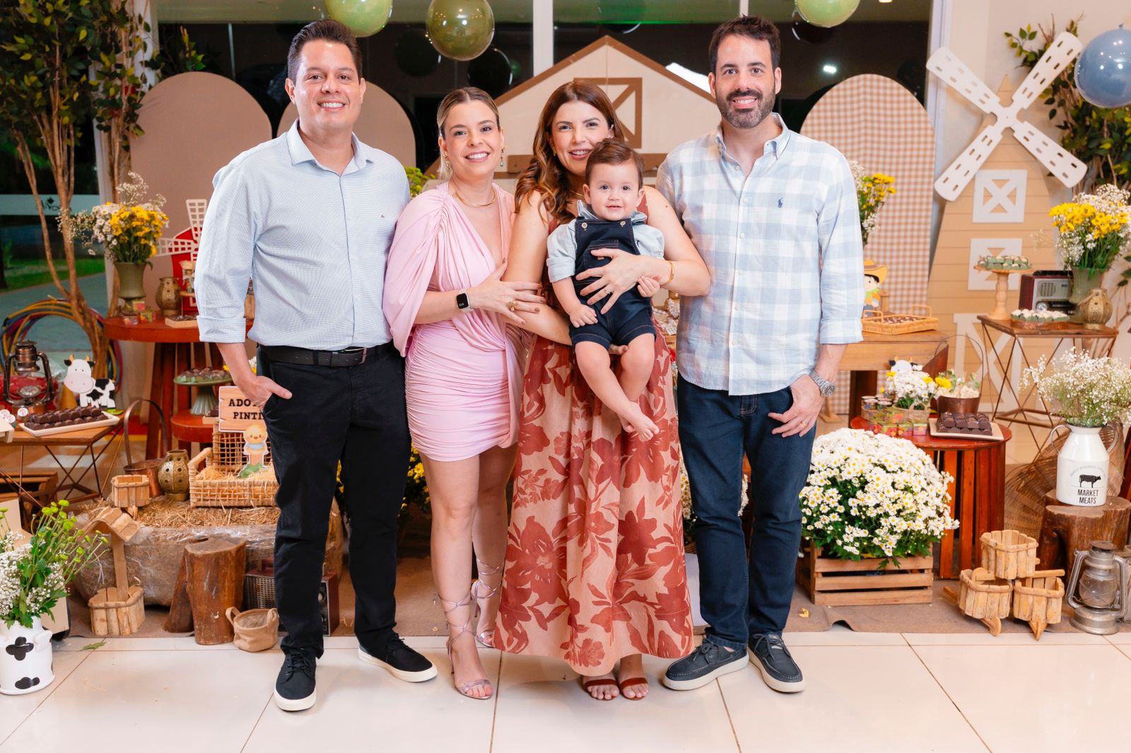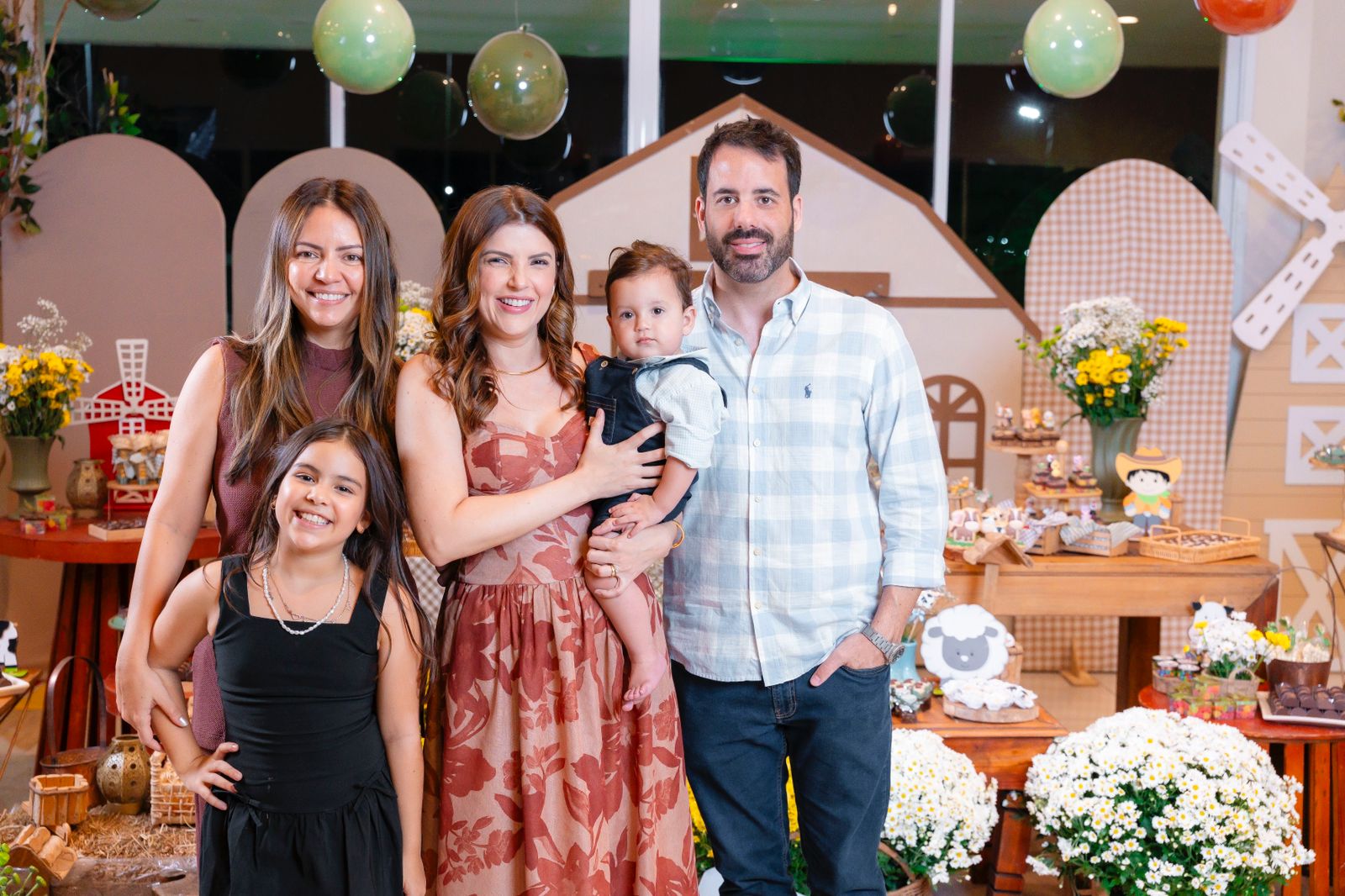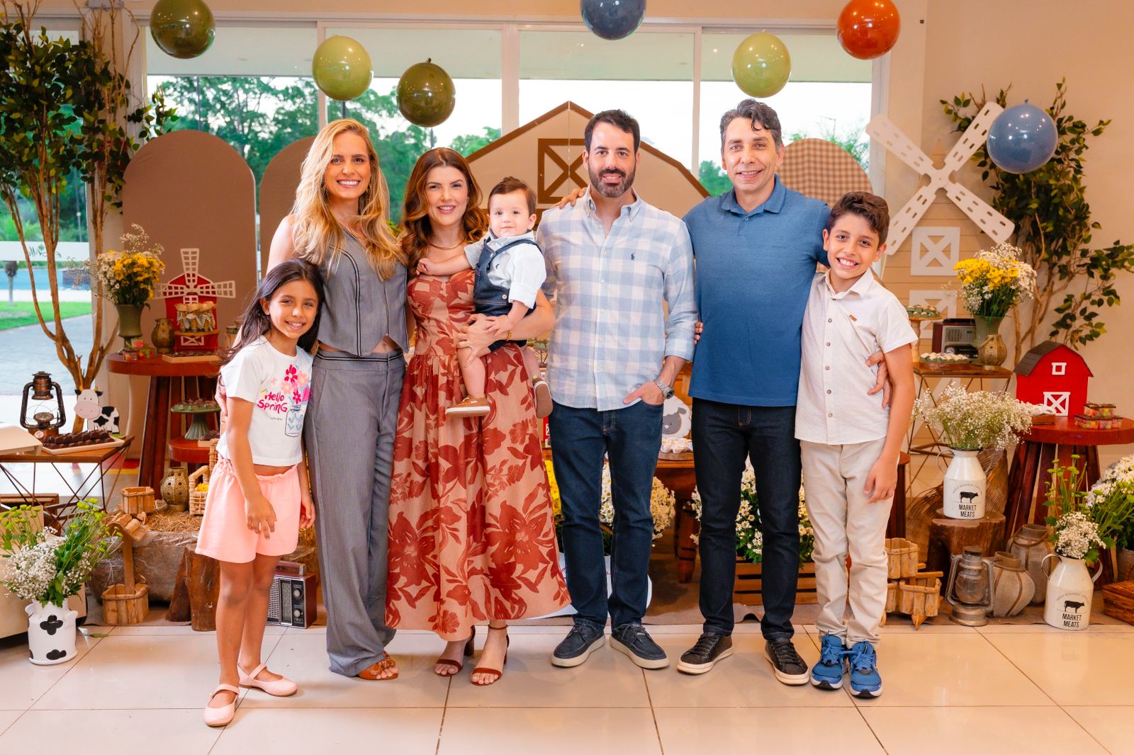Com o tema Fazendinha, ele recebeu os amiguinhos e os amigos de seus pais para juntos celebrarem esse momento tão especial. A criançada e os adultos se deliciaram com o saboroso menu oferecido, enquanto o palhaço Peteleco garantiu a animação com muitas brincadeiras e risadas.