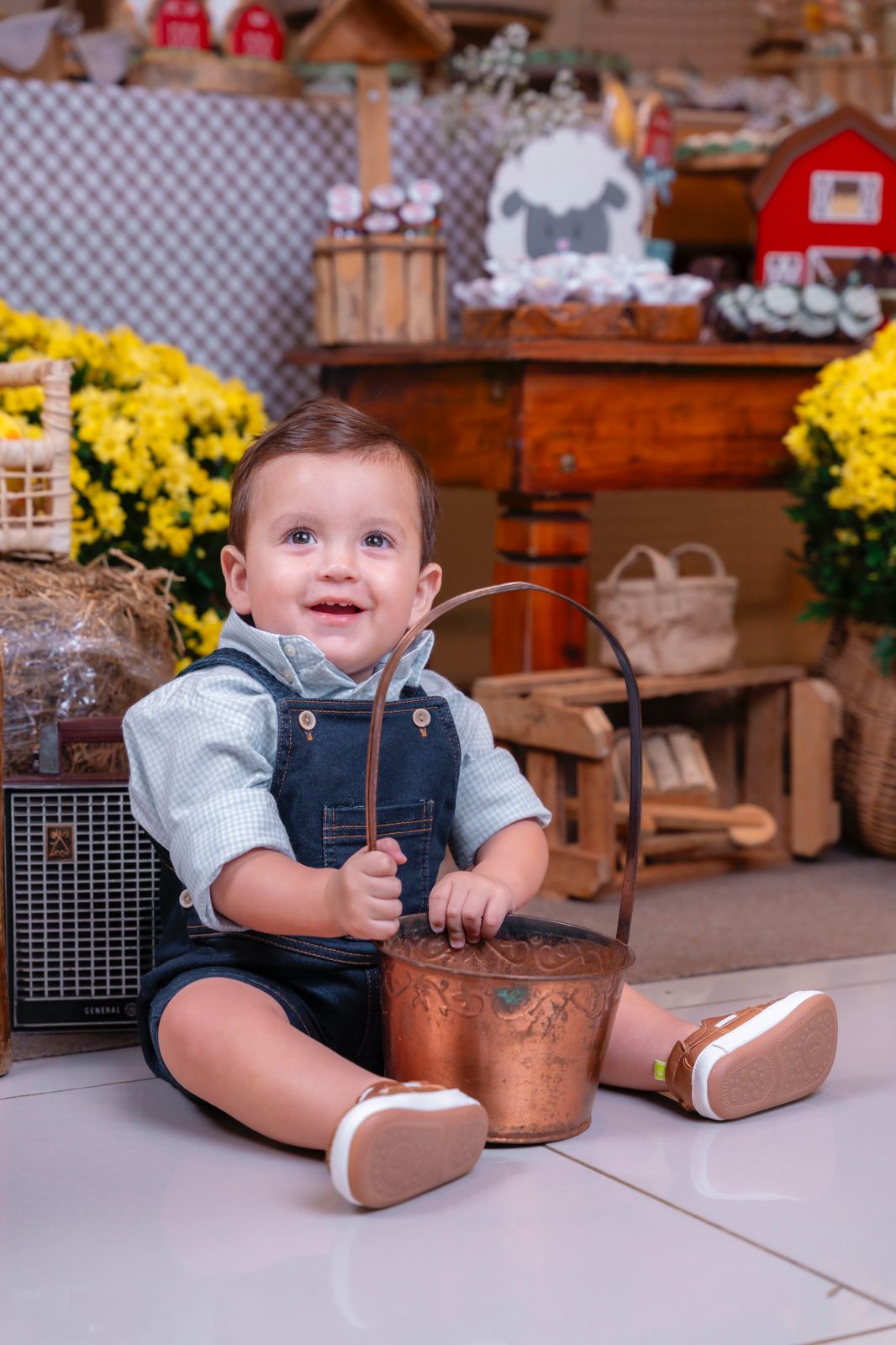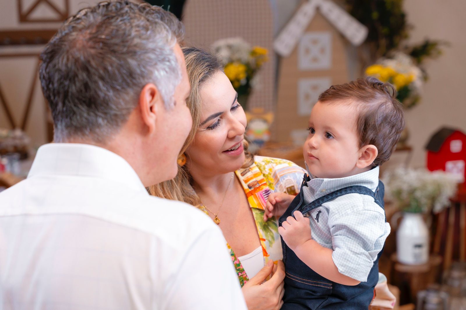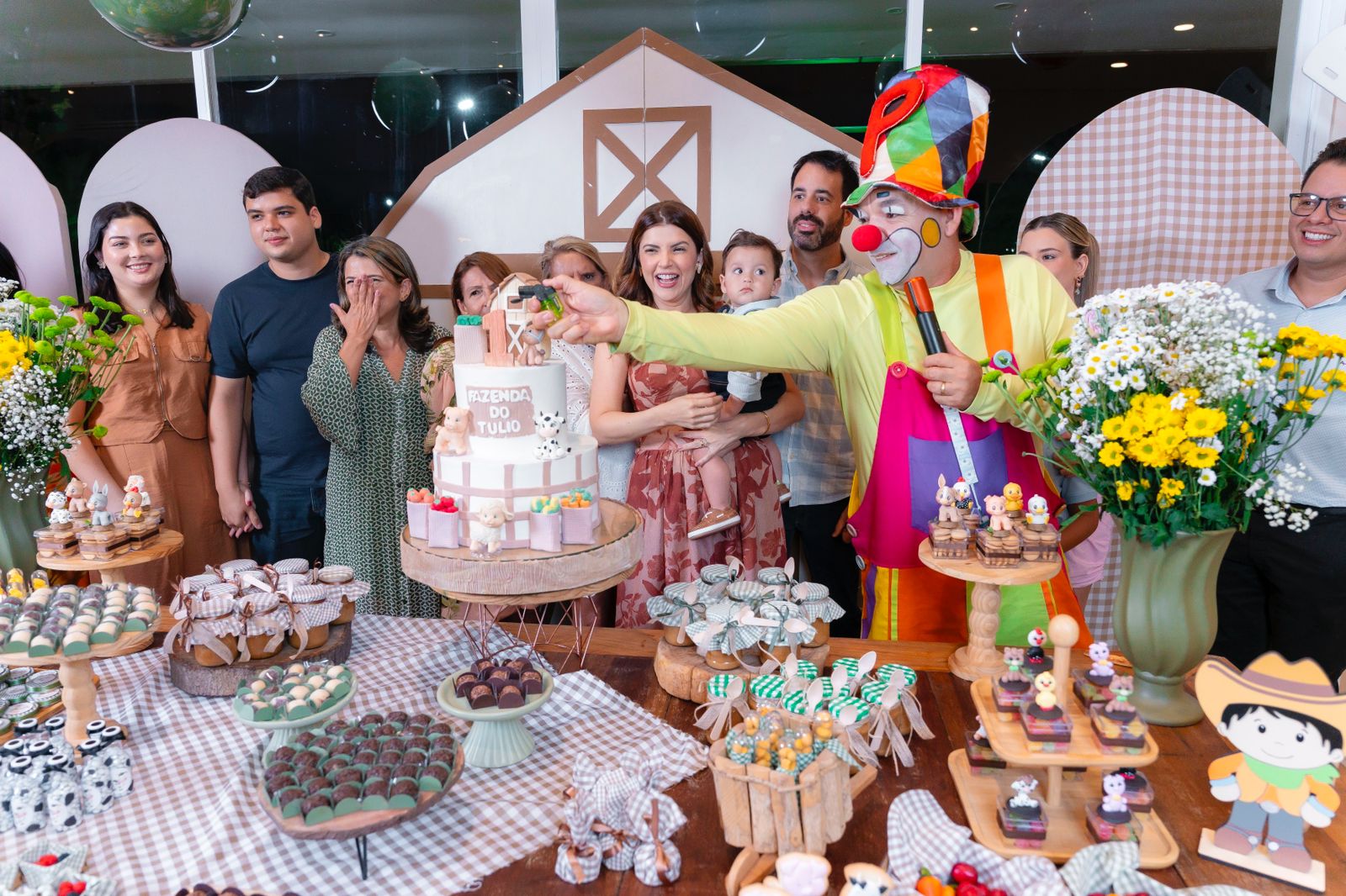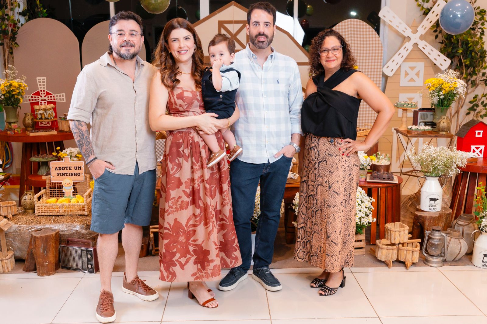Com o tema Fazendinha, ele recebeu os amiguinhos e os amigos de seus pais para juntos celebrarem esse momento tão especial. A criançada e os adultos se deliciaram com o saboroso menu oferecido, enquanto o palhaço Peteleco garantiu a animação com muitas brincadeiras e risadas.