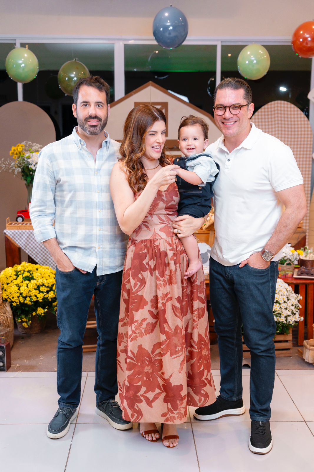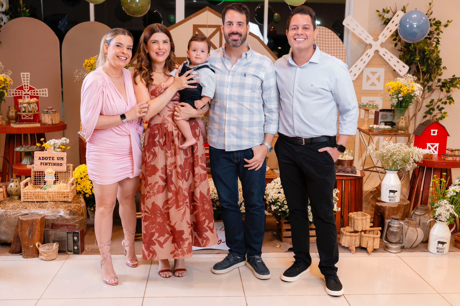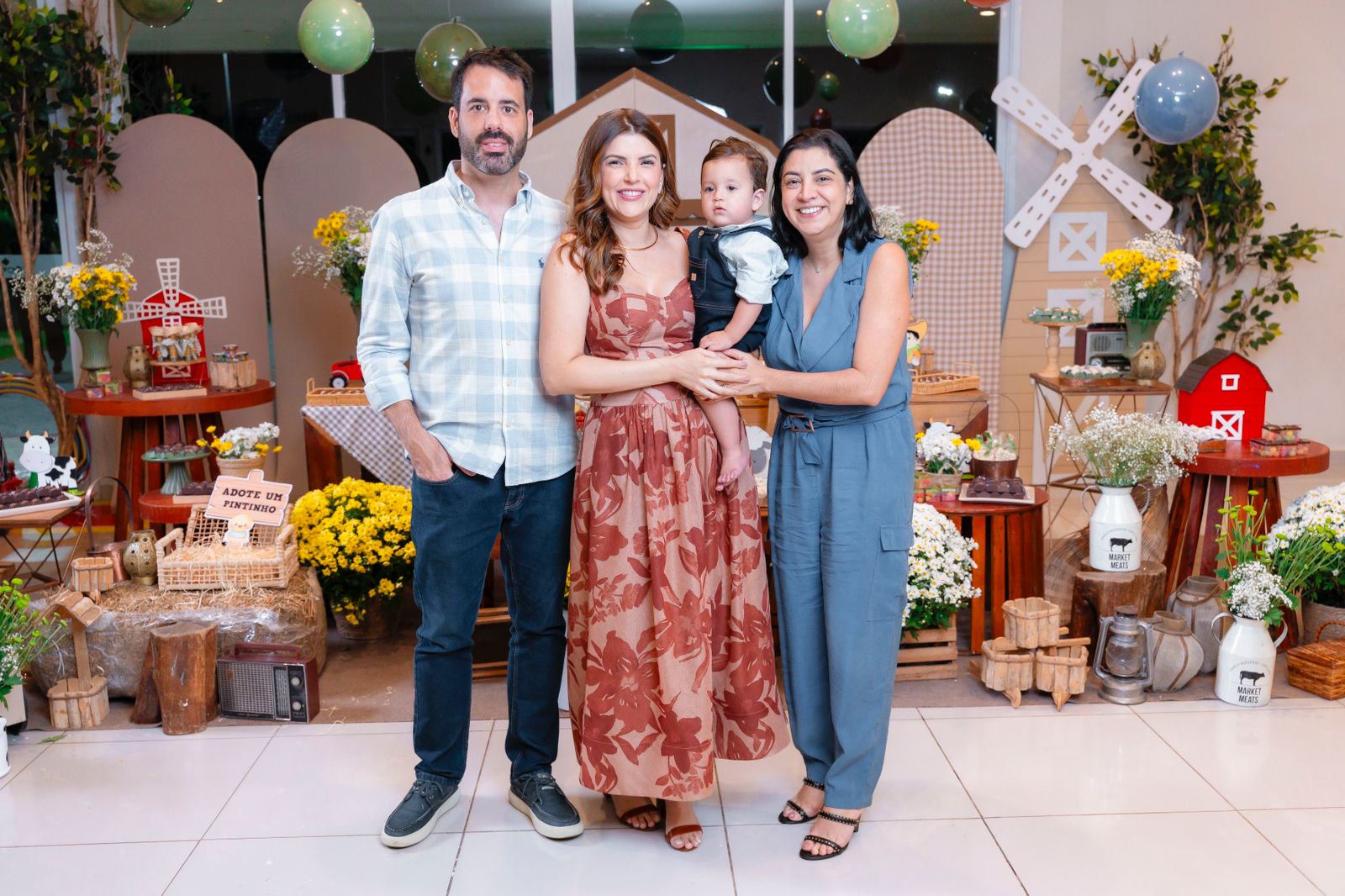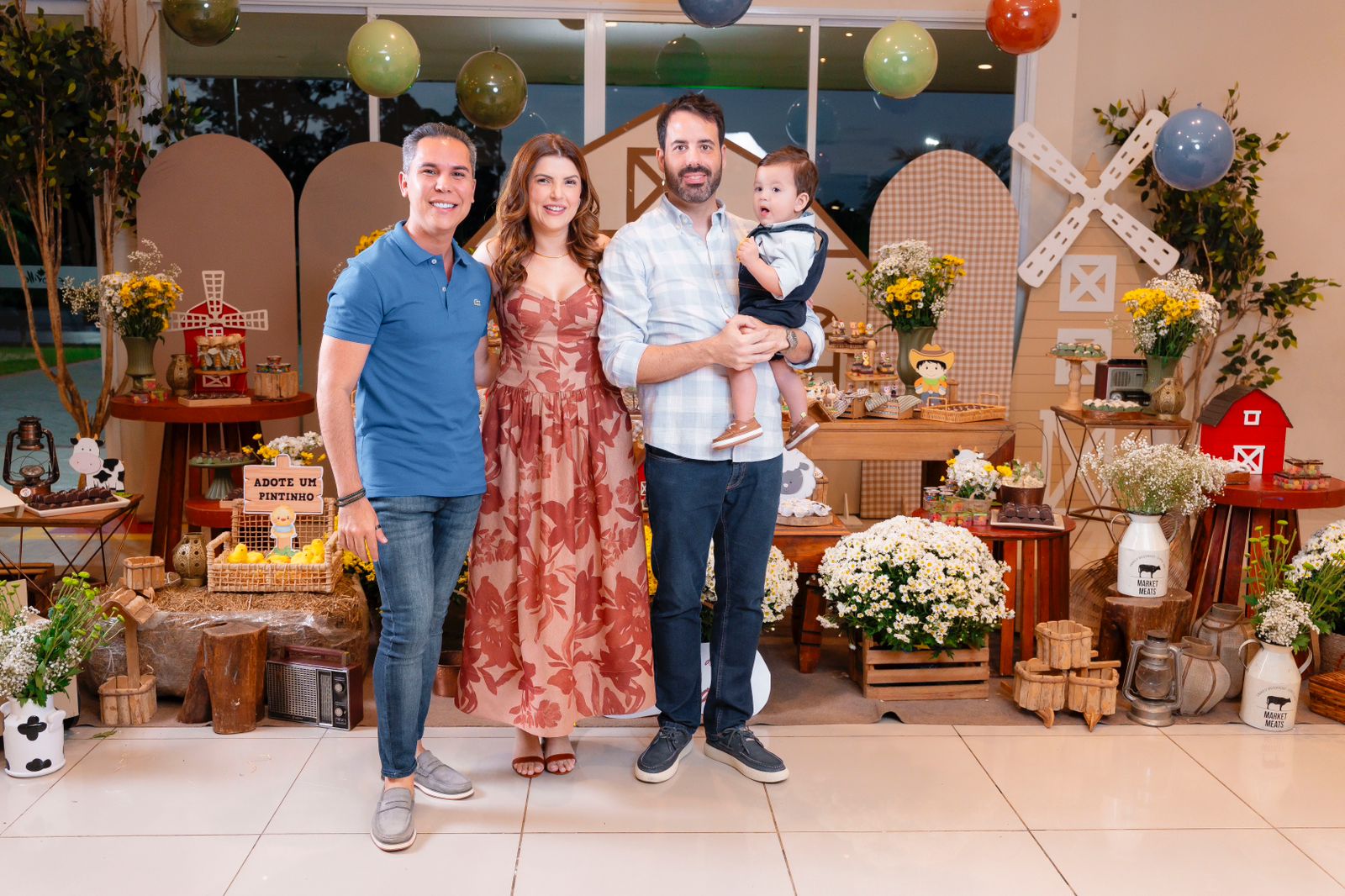 Com o tema Fazendinha, ele recebeu os amiguinhos e os amigos de seus pais para juntos celebrarem esse momento tão especial. A criançada e os adultos se deliciaram com o saboroso menu oferecido, enquanto o palhaço Peteleco garantiu a animação com muitas brincadeiras e risadas.