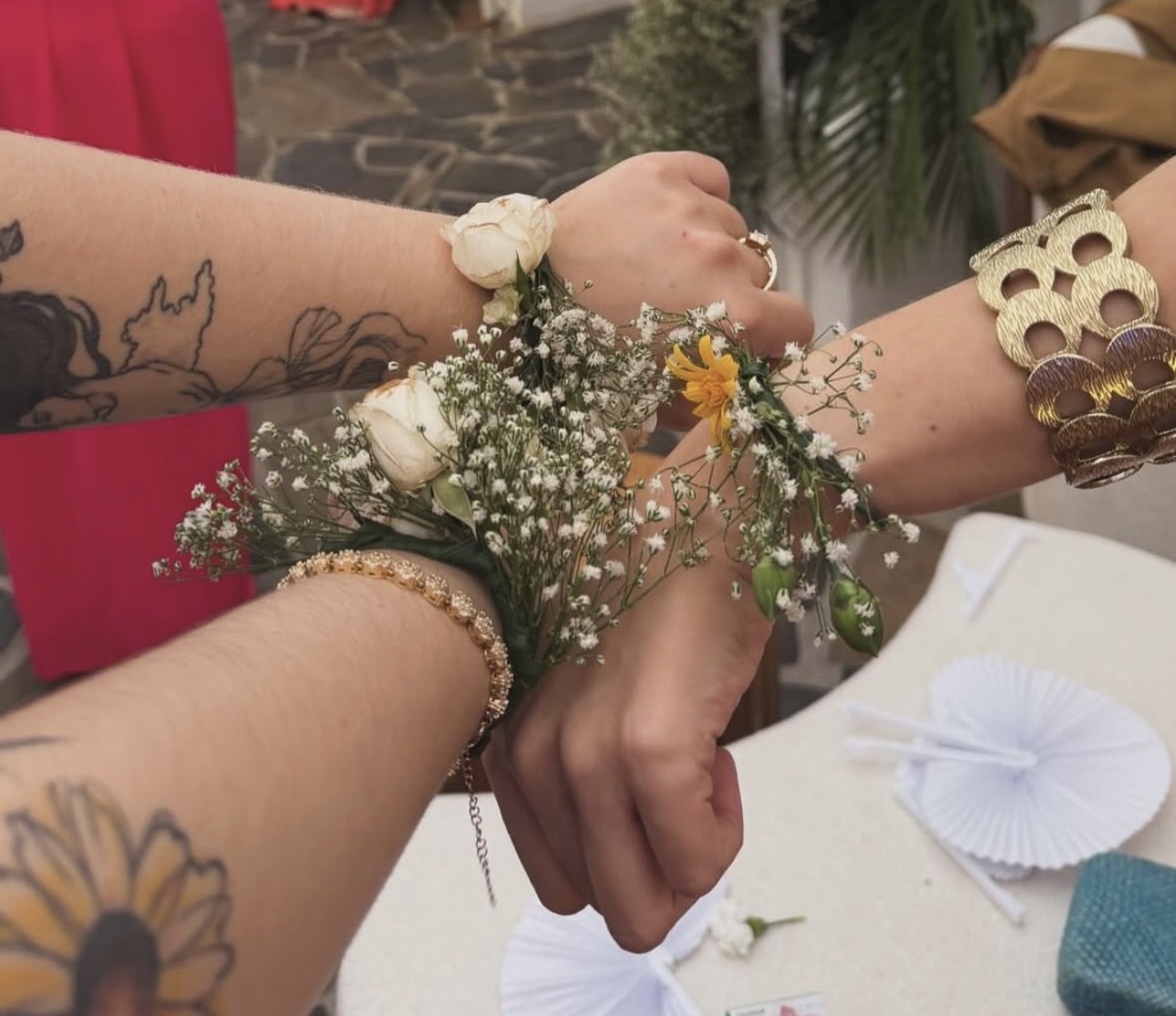 E um detalhe de charme encantou ainda mais: as madrinhas usavam uma florzinha delicada no braço, escolhida especialmente pela noiva, que criou uma unidade visual suave, elegante e cheia de poesia. Um toque sutil que transformou cada foto em quadro e deu ainda mais personalidade ao grande dia. Madrinhas e convidados completaram o salão com um desfile de estilo. Très chic!