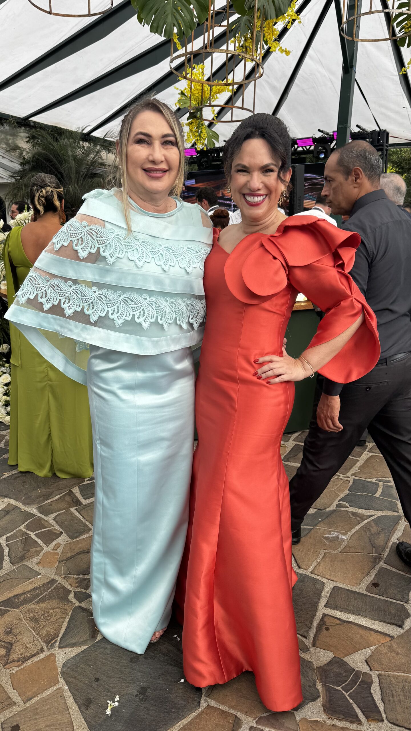 A elegância? De tirar o fôlego. Depois da noiva Camila, as mais lindas da festa eram, sem dúvida, as mães dos noivos, a procuradora de Justiça Kátia Rejane Rodrigues e a socialite e sempre impecável Ligiane Castro. Lindíssimas, lindíssimas, um colírio, um capítulo à parte!