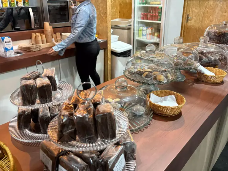 O espaço conta com duas ĂĄreas de alimentação: uma lanchonete no setor de imprensa, administrada pelo Nanay CafĂ©, e a chamada âDining Areaâ, voltada a participantes credenciados. No local, os visitantes encontram empadas por R$ 39, copos com mini pĂŁes de queijo por R$ 40, quiches a R$ 40 e sucos a R$ 35.