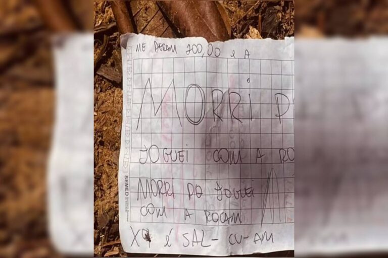 A vítima foi encontrada com as mãos amarradas e múltiplos disparos pelo corpo. Próximo ao cadáver havia um bilhete com a seguinte mensagem: “Recebi R$ 200. Morri porque joguei com a Rocam. X9 é sal. CV-AM”.