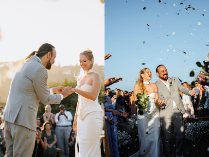 Nesta sexta-feira (21/11), em uma rede social, Gabriel O Pensador, de 50 anos, abriu o álbum de fotos do casamento com Gabriela Vicente, 24. A festa intimista foi ao ar livre, com o mar da Praia do Rosa, em Santa Catarina, de testemunha e Nelson Freitas como celebrante.